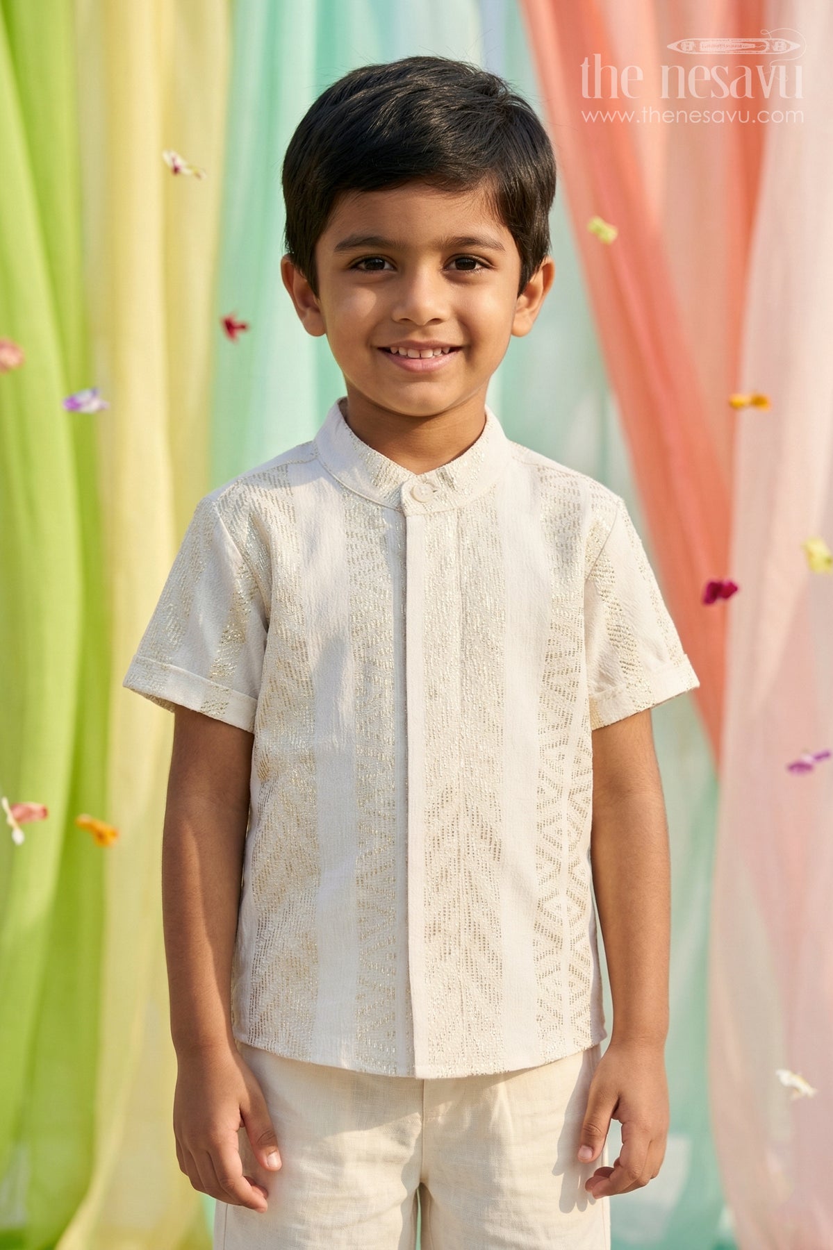 The Nesavu Boys Cotton Shirt Boys Cotton Shirt for Festive Occasions and Traditional Wear Nesavu Nesavu Boys Cotton Shirt With Zari Design For Festive Occasions And Traditional Wear With Breathable Fabric
