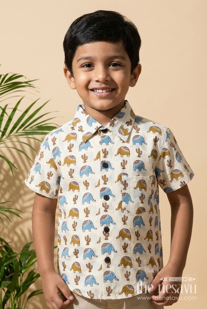 Boys Elephant and Cactus Print Shirt for Travel and Casual Dressing