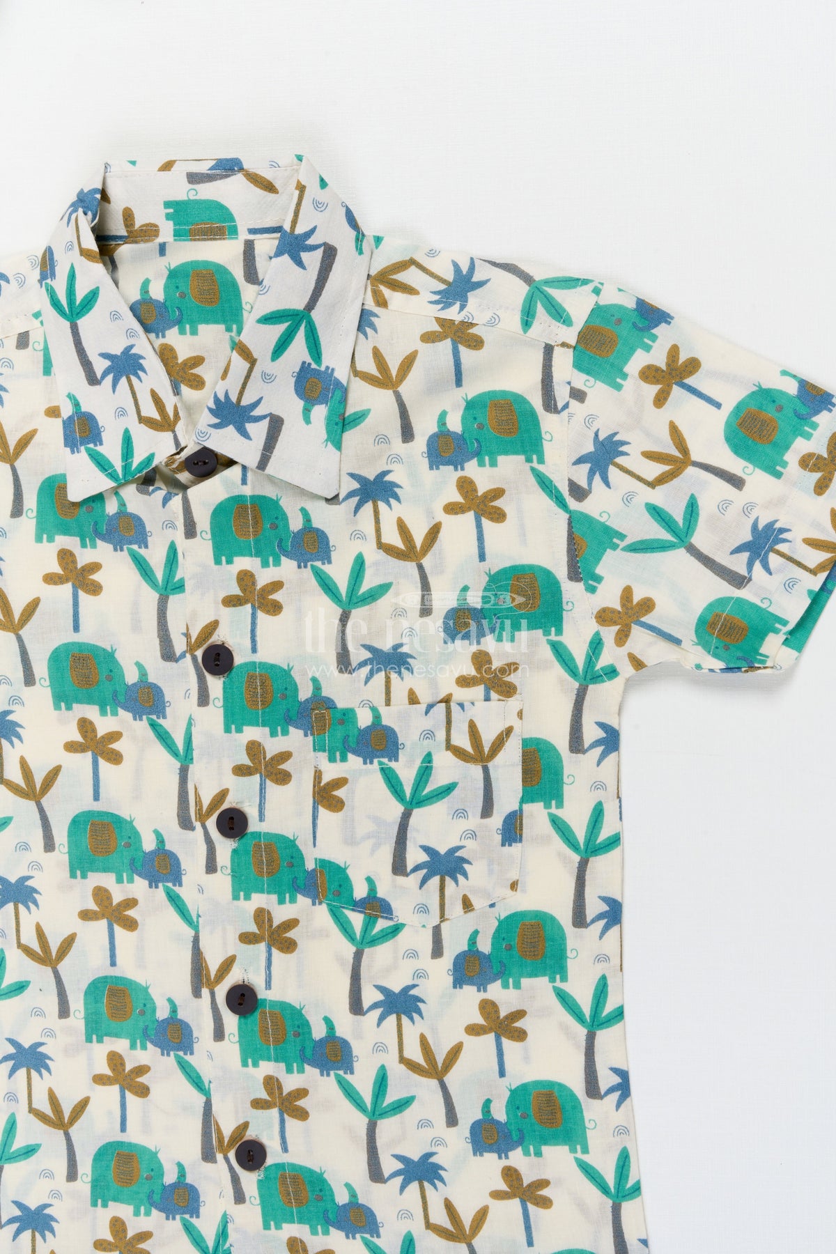- This boys cotton shirt with fun elephant and palm tree print is perfect for zoo visits, holidays, or nature-themed events
