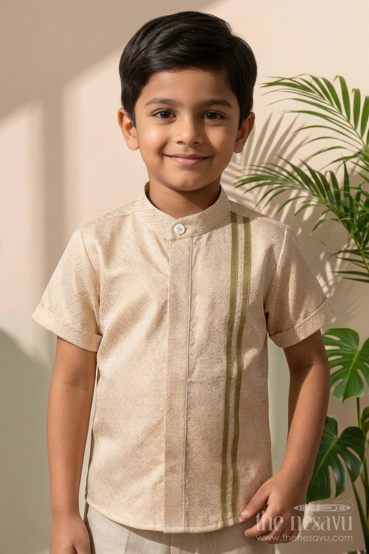 The Nesavu Boys Silk Shirt Boys Silk Shirt with Tissue Stripes for Festive Occasions Nesavu Nesavu boys gold tissue silk shirt with stripes for weddings and festive traditional wear