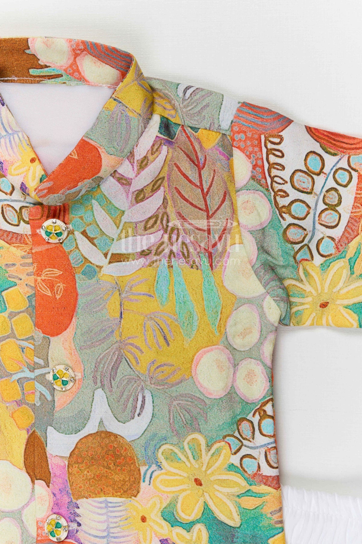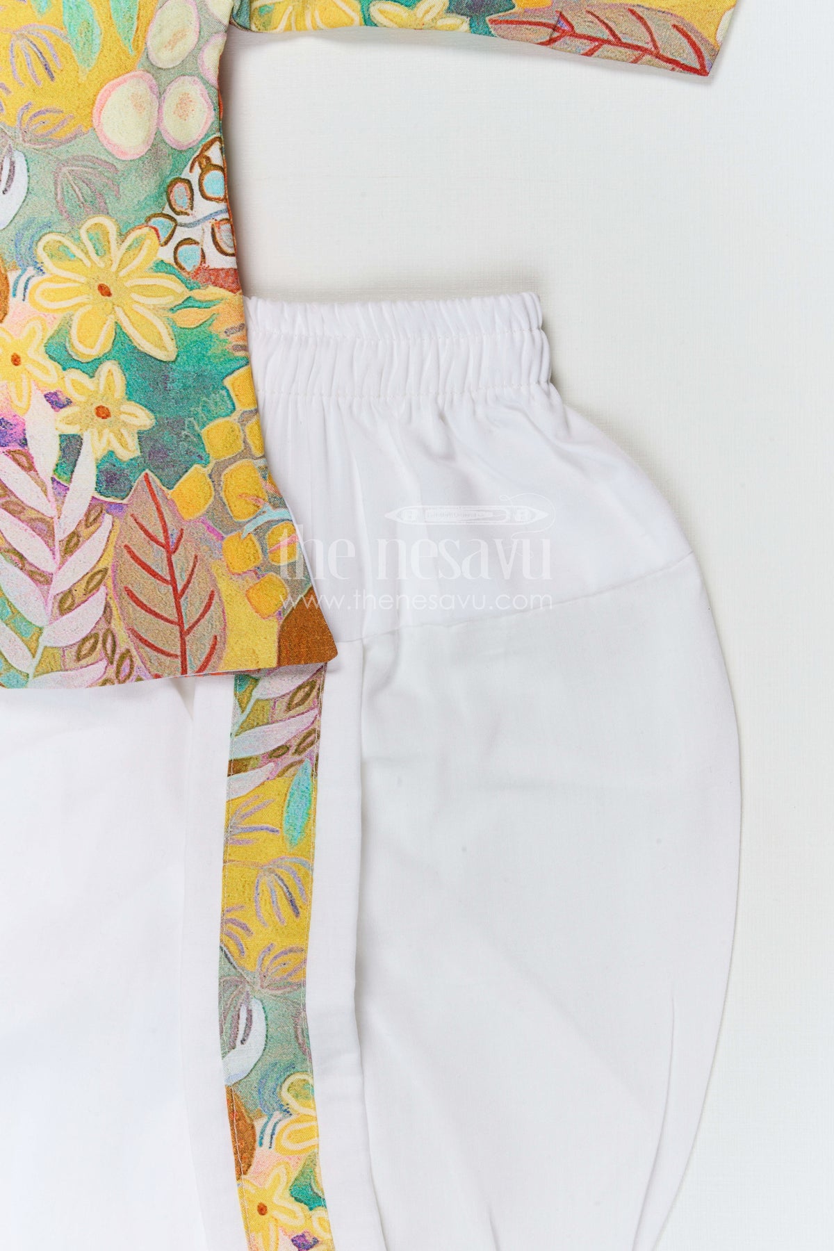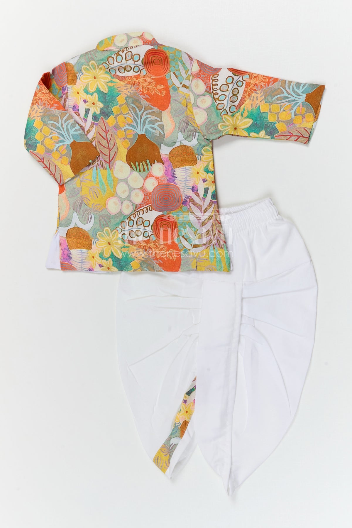 The Nesavu Boys Dothi Set Boys Traditional Dhoti Set for Festivals and Cultural Celebrations Nesavu 10 (NB) / Multicolor / Viscose Silk BES962B-10 Nesavu boys traditional dhoti set with digital print top for festive occasions and temple functions