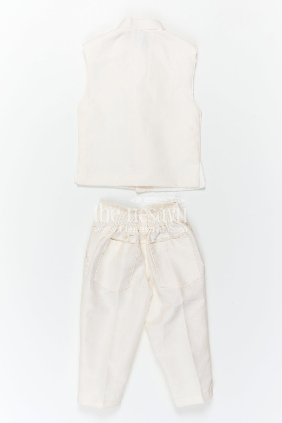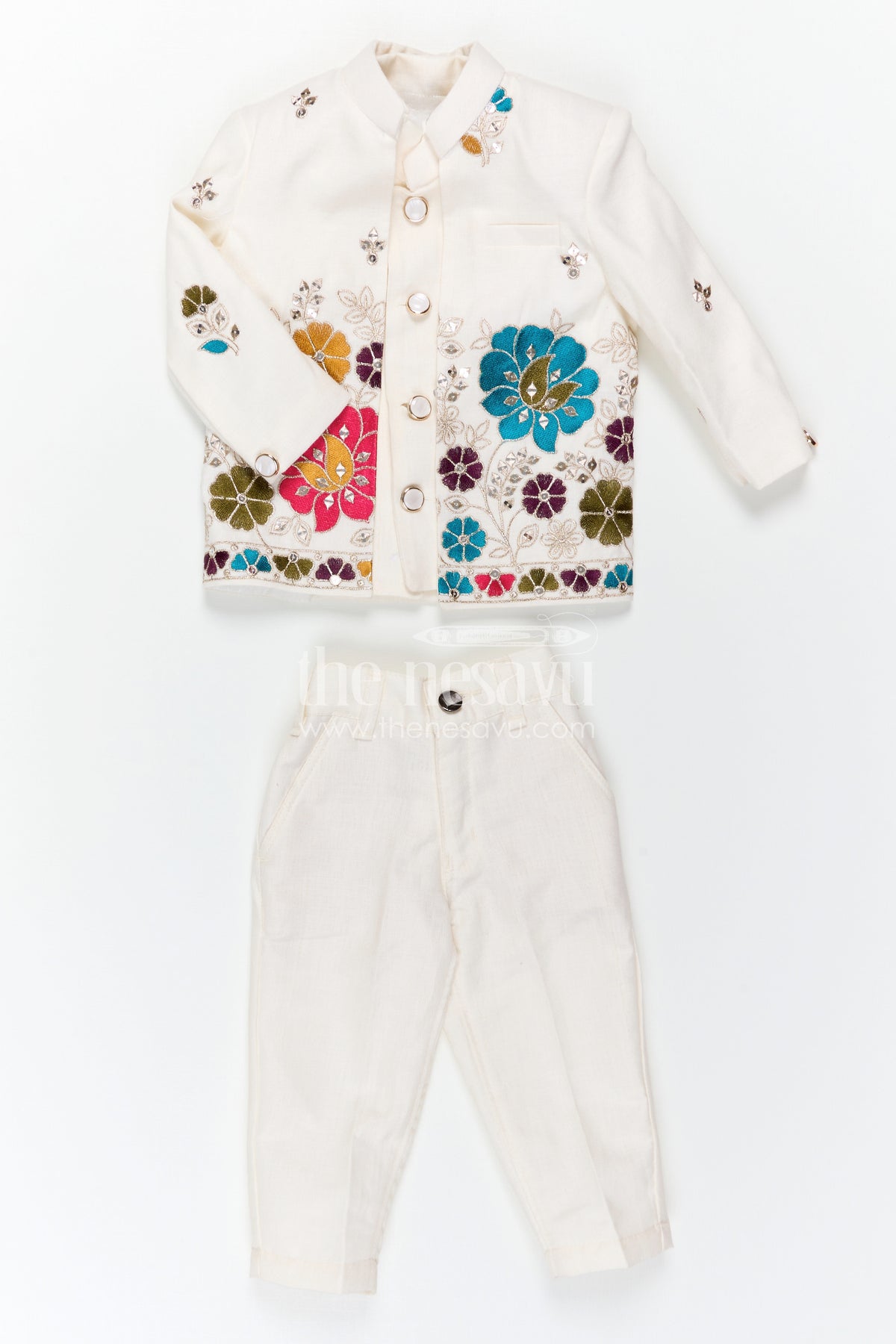 The Nesavu Boys Jacket Sets Boys Traditional Jacket Set for Weddings and Festive Occasions Nesavu Nesavu Boys Ethnic Jacket Set In White Viscose Silk With Thread Embroidery For Weddings And Festive Occasions