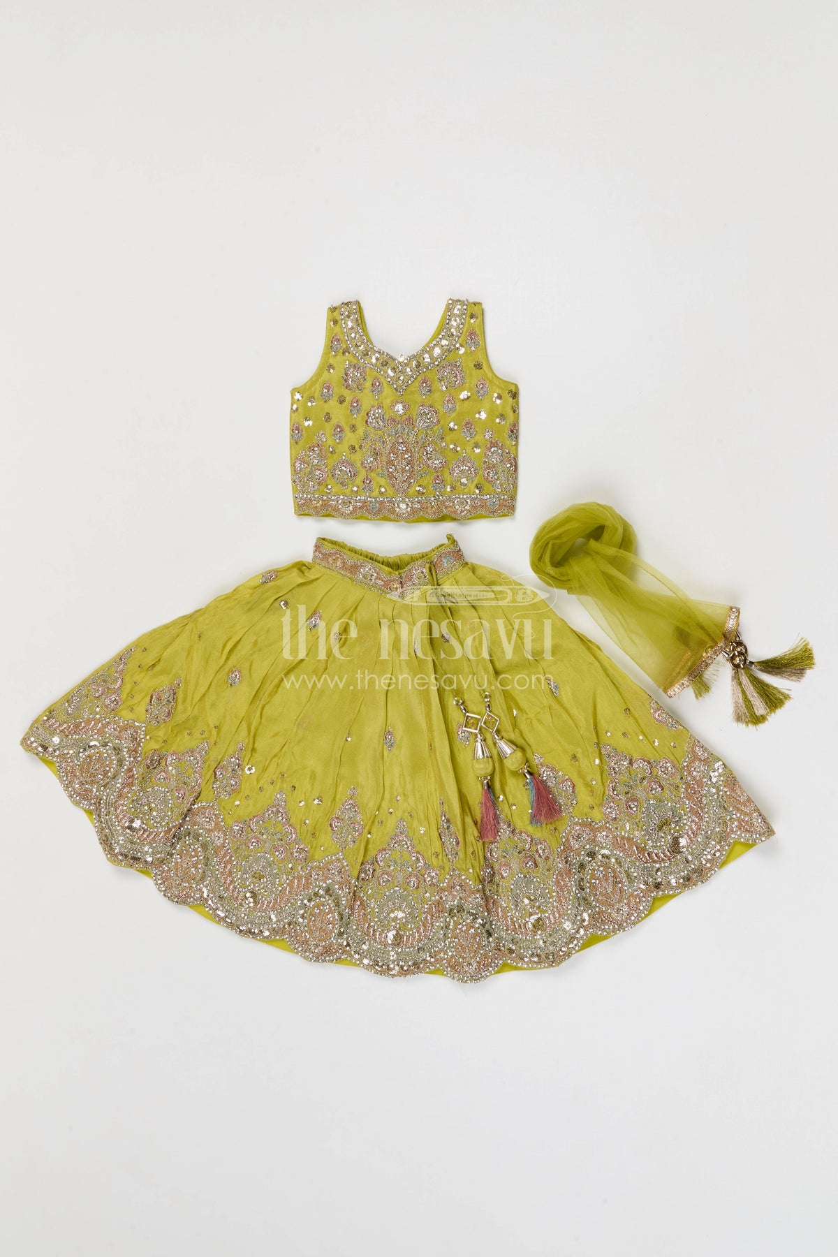 The Nesavu Girls Ethnic Lehenga Girls Lehenga Set for Weddings and Festive Celebrations for Events Nesavu Nesavu girls festive lehenga set for weddings and celebrations viscose silk outfit with designer embroidery