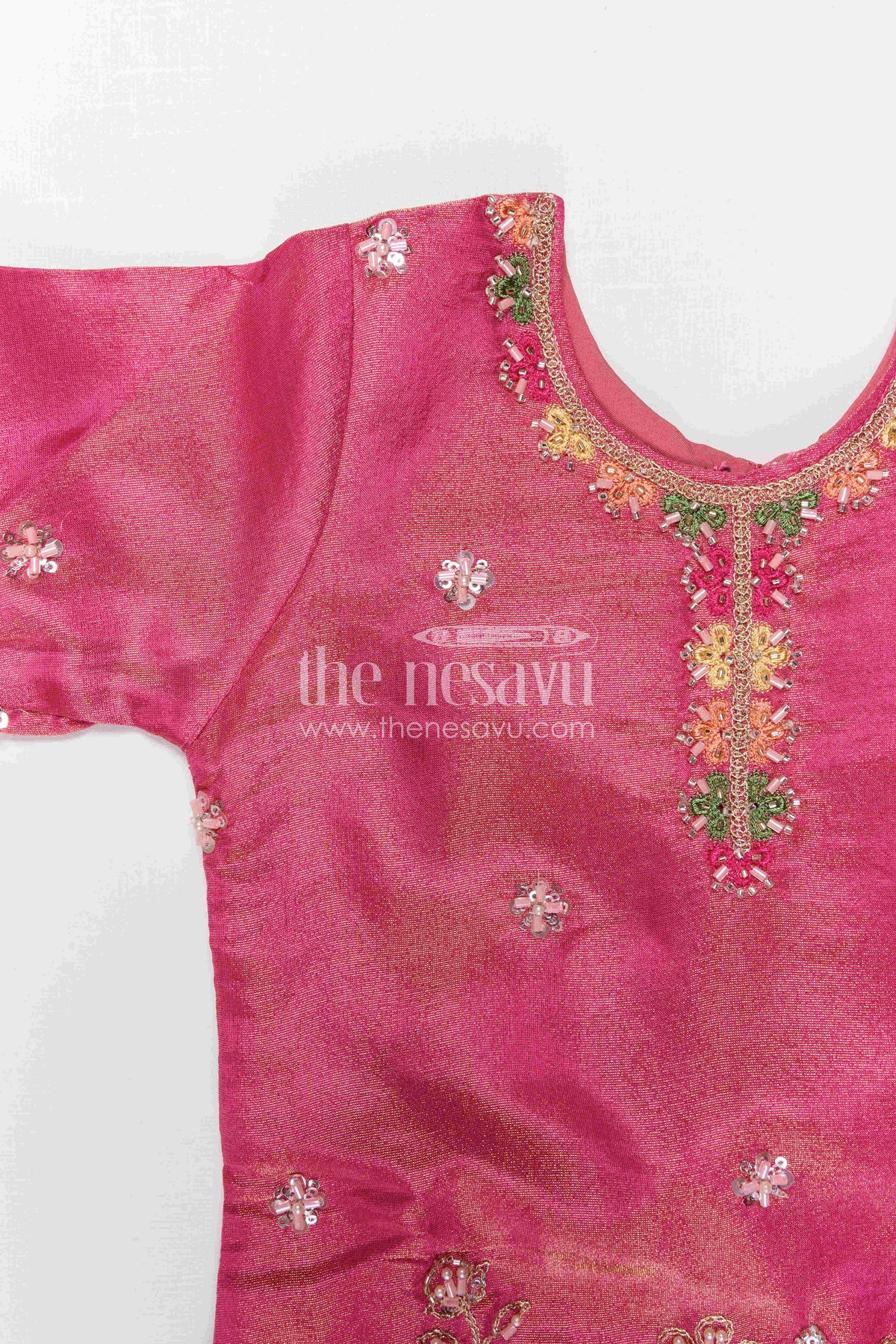The Nesavu Girls Sharara / Plazo Set Girls Sharara Outfit for Weddings and Festive Celebrations Nesavu 18 (2Y) / Pink / Viscose Silk GPS1030A-18 Nesavu Girls Sharara Outfit For Weddings With Viscose Silk And Designer Embroidery Festive Set