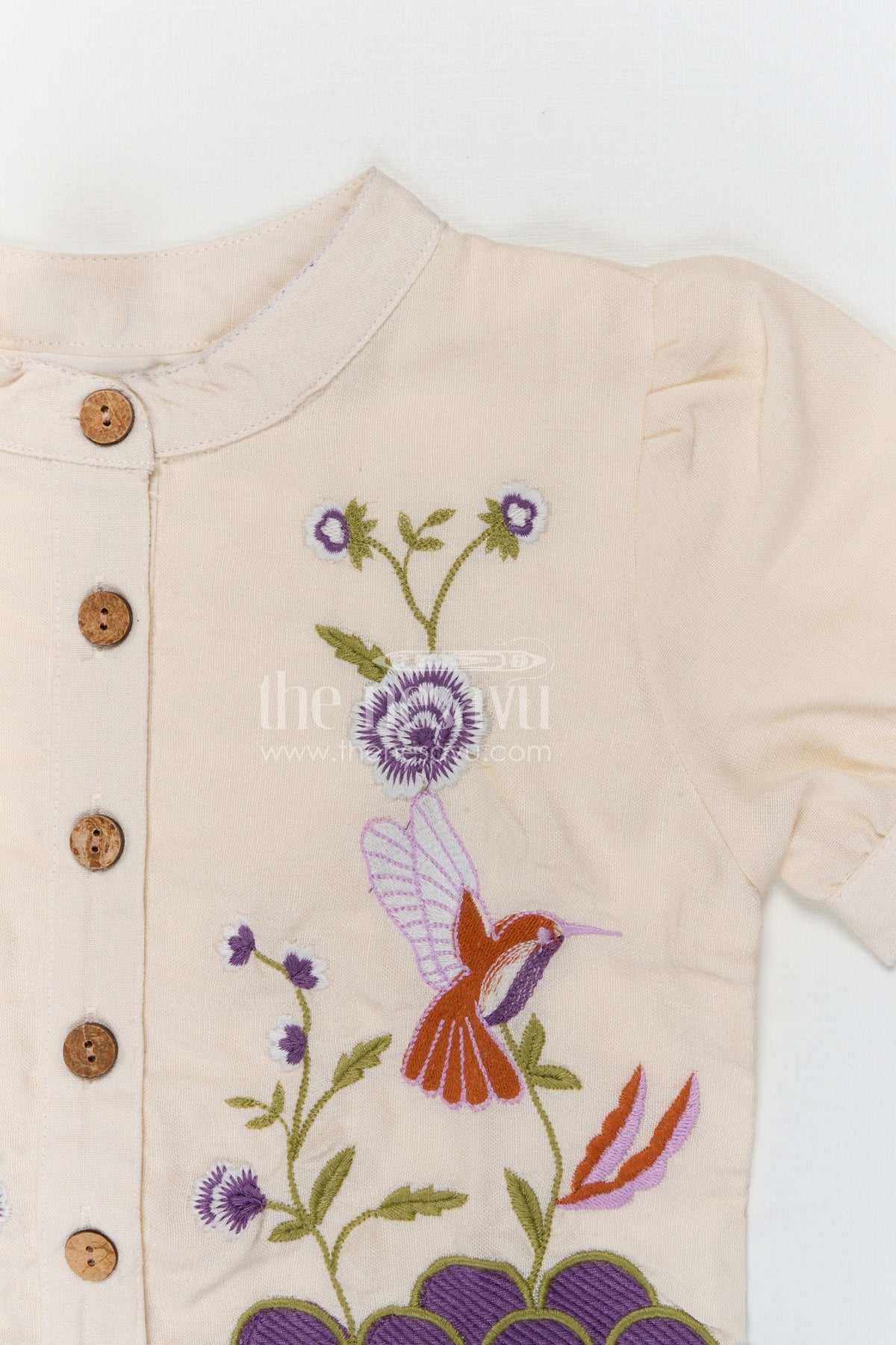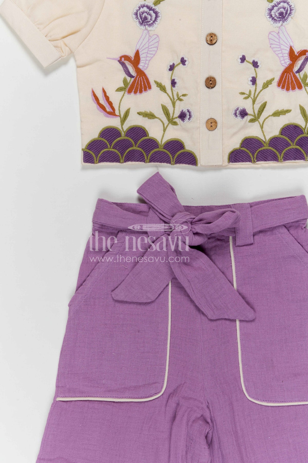 - Crafted from soft muslin cotton with thread embroidery that keeps the outfit breathable and comfortable