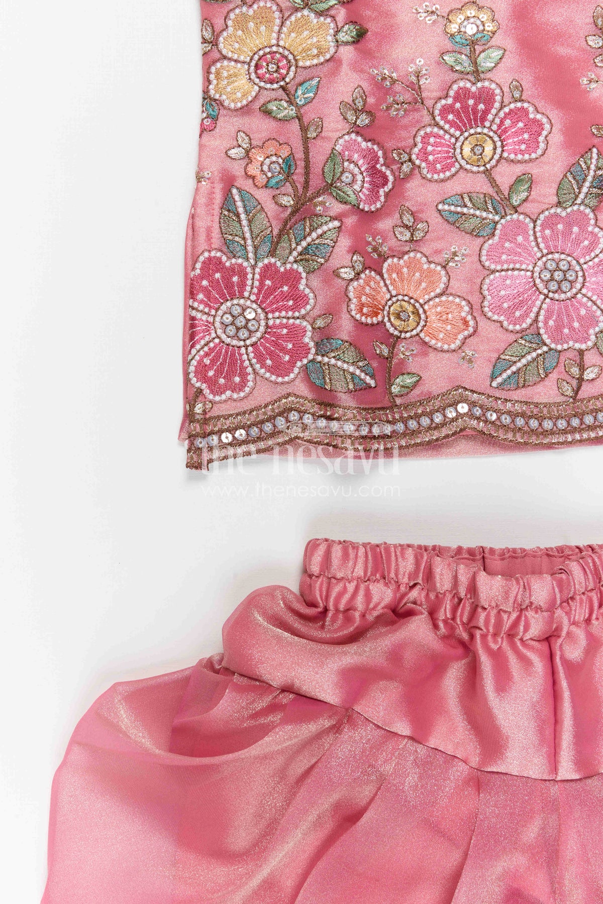 - This girls sharara set for festive functions brings together soft elegance and playful comfort
