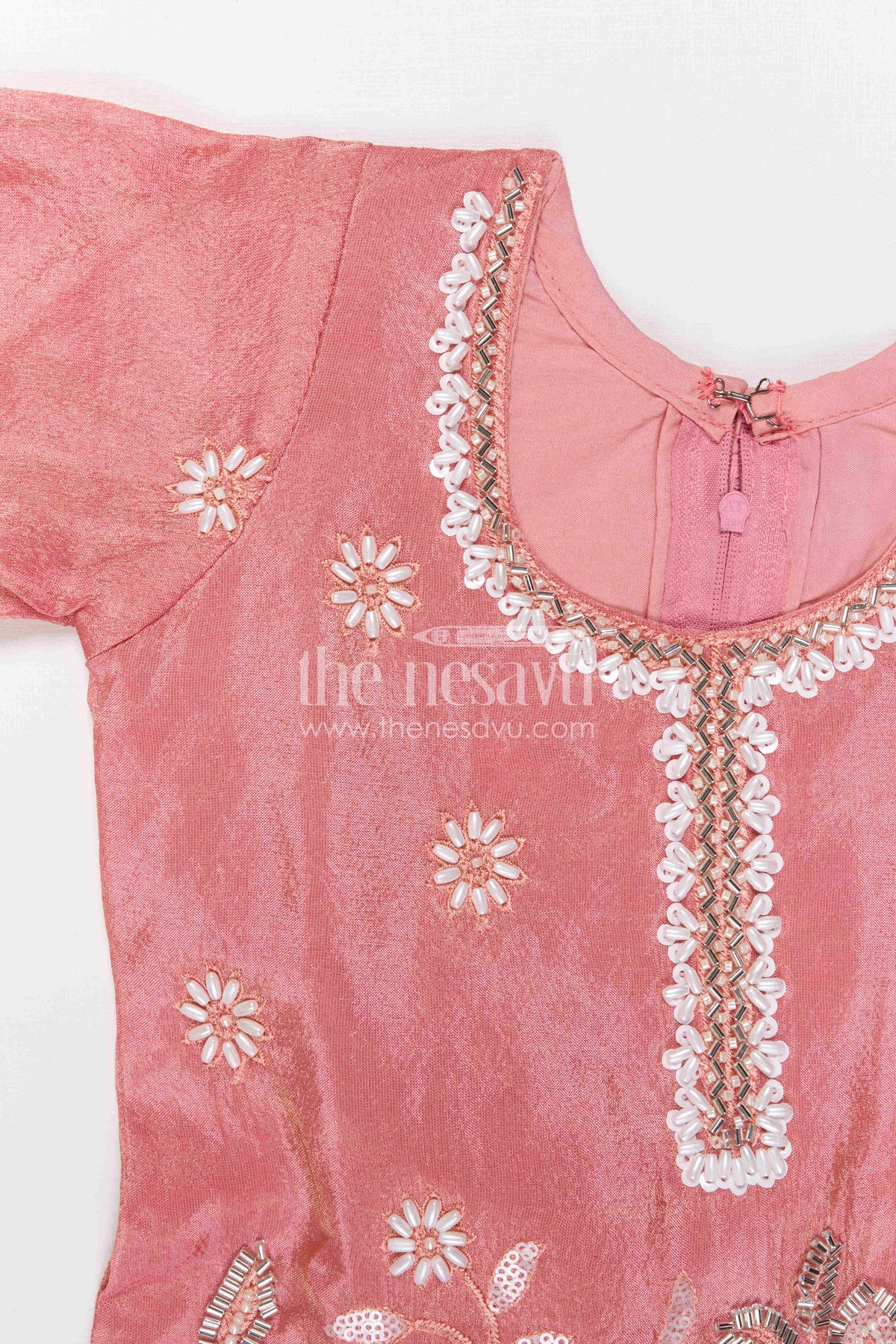 The Nesavu Girls Sharara / Plazo Set Girls Sharara Set for Festive Functions and Wedding Wear Nesavu 18 (2Y) / Peach / Viscose Silk GPS1019B-18 Nesavu Girls Sharara Set For Weddings And Festive Occasions With Viscose Silk And Designer Embroidery