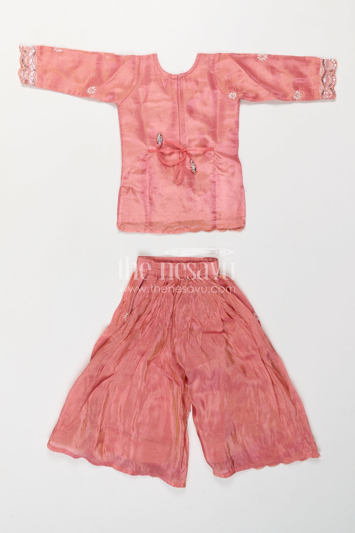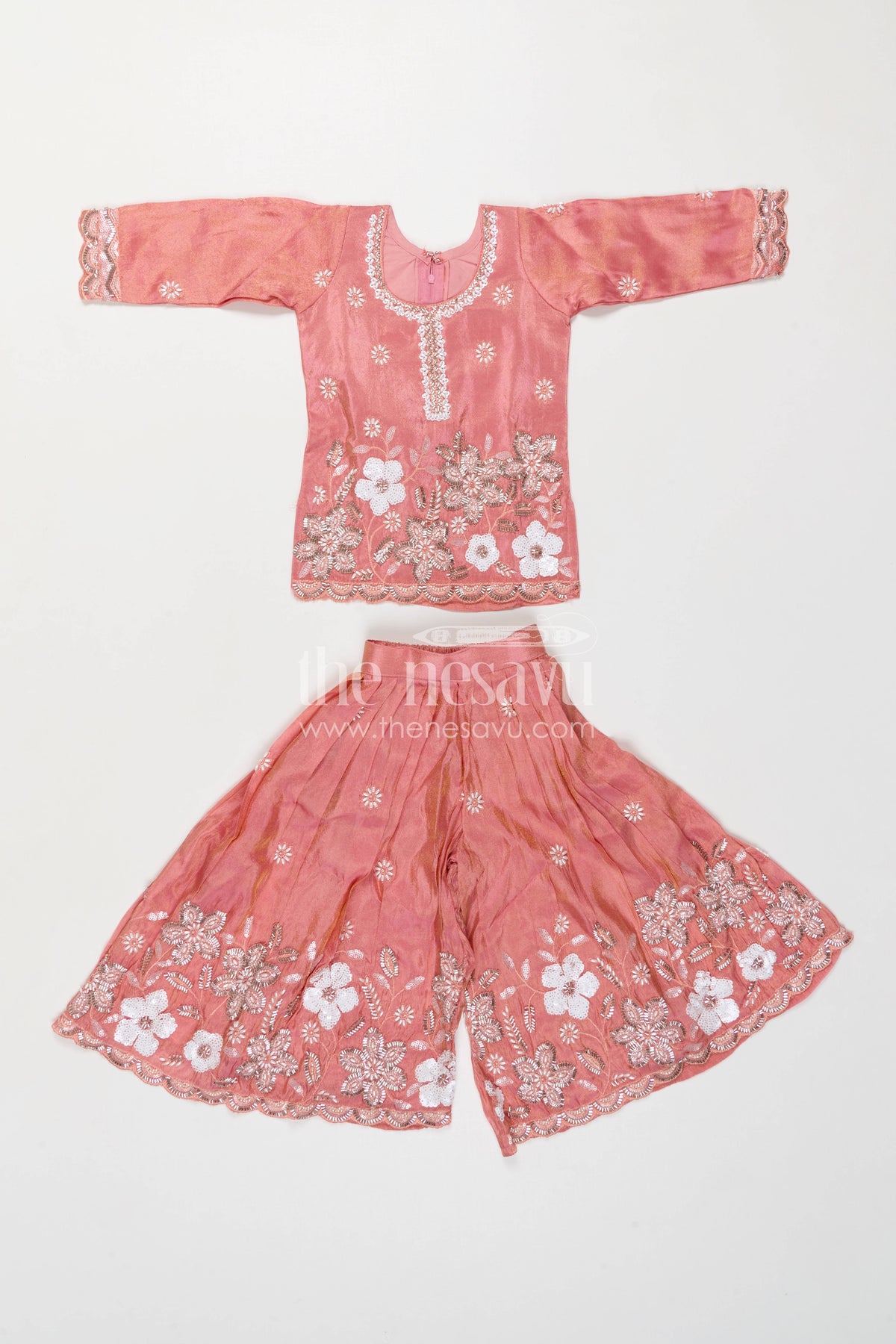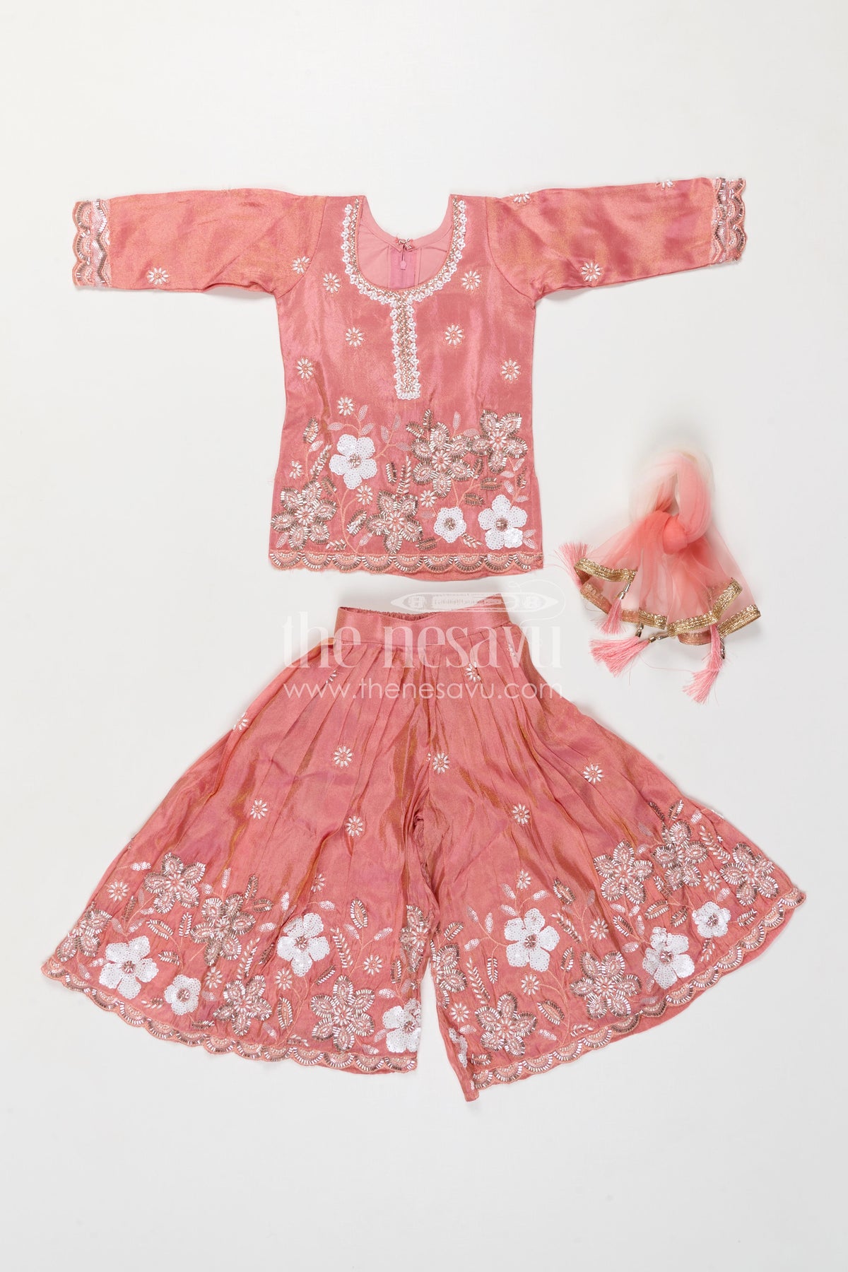The Nesavu Girls Sharara / Plazo Set Girls Sharara Set for Festive Functions and Wedding Wear Nesavu Nesavu Girls Sharara Set For Weddings And Festive Occasions With Viscose Silk And Designer Embroidery