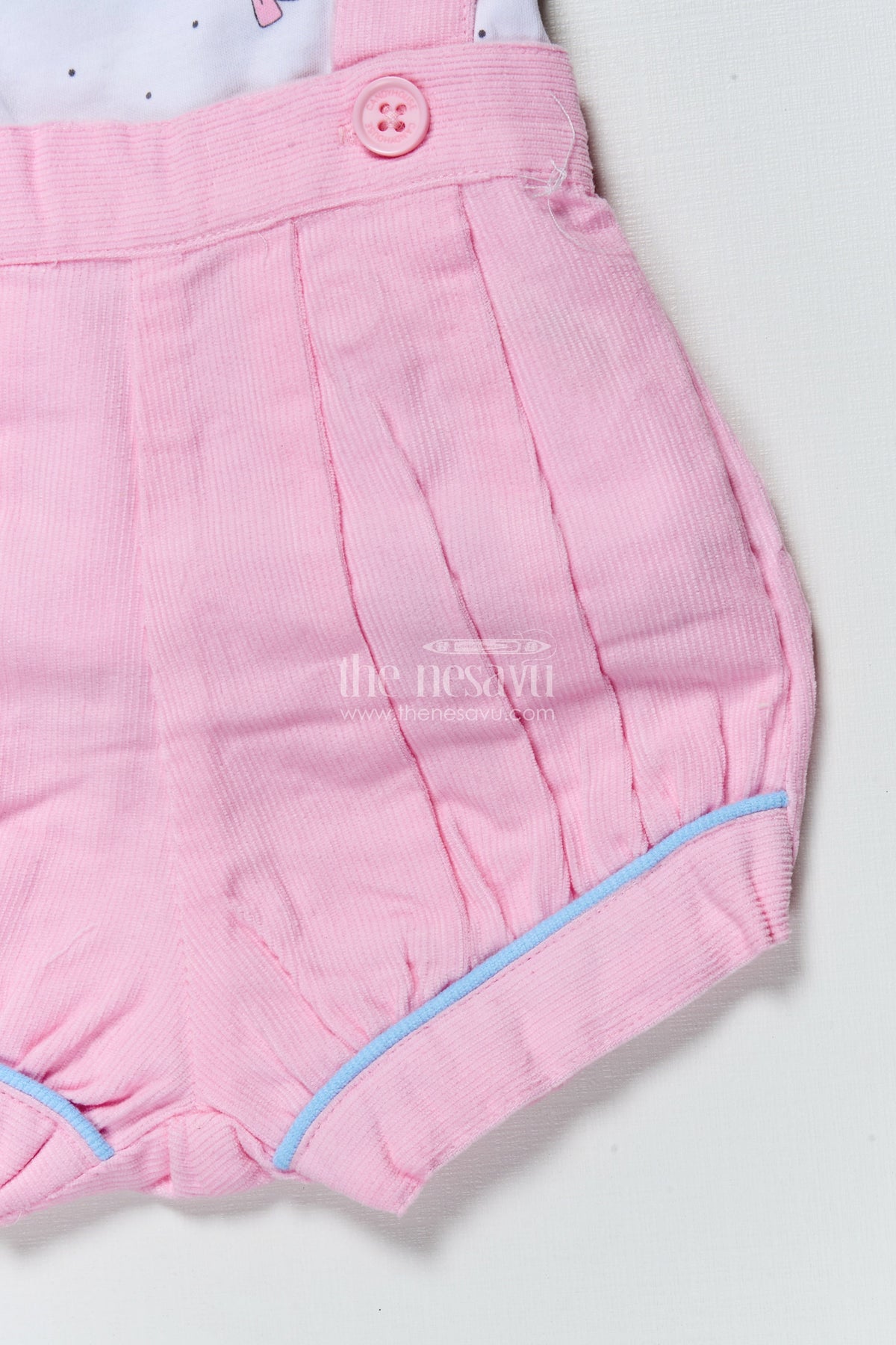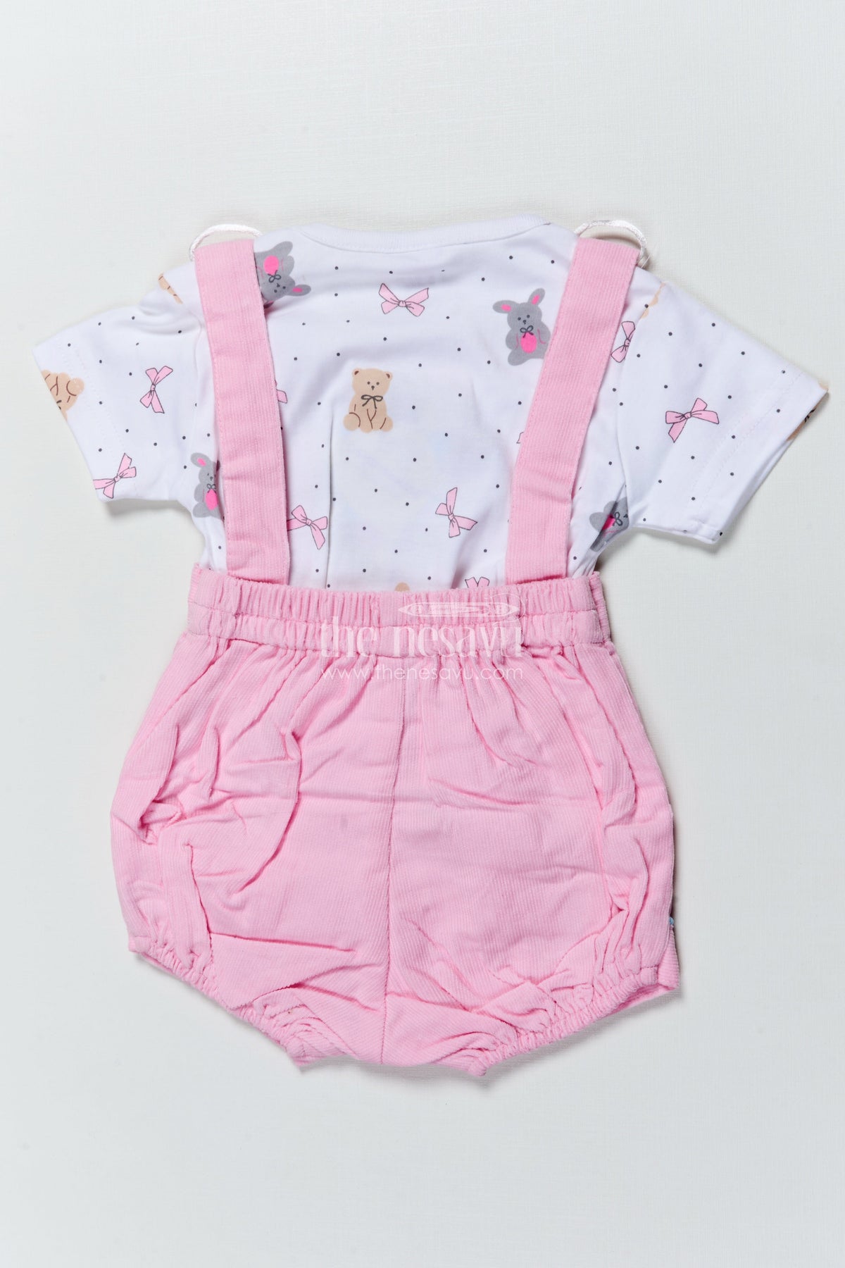 - This baby casual set features a printed tee and pleated suspender-style romper