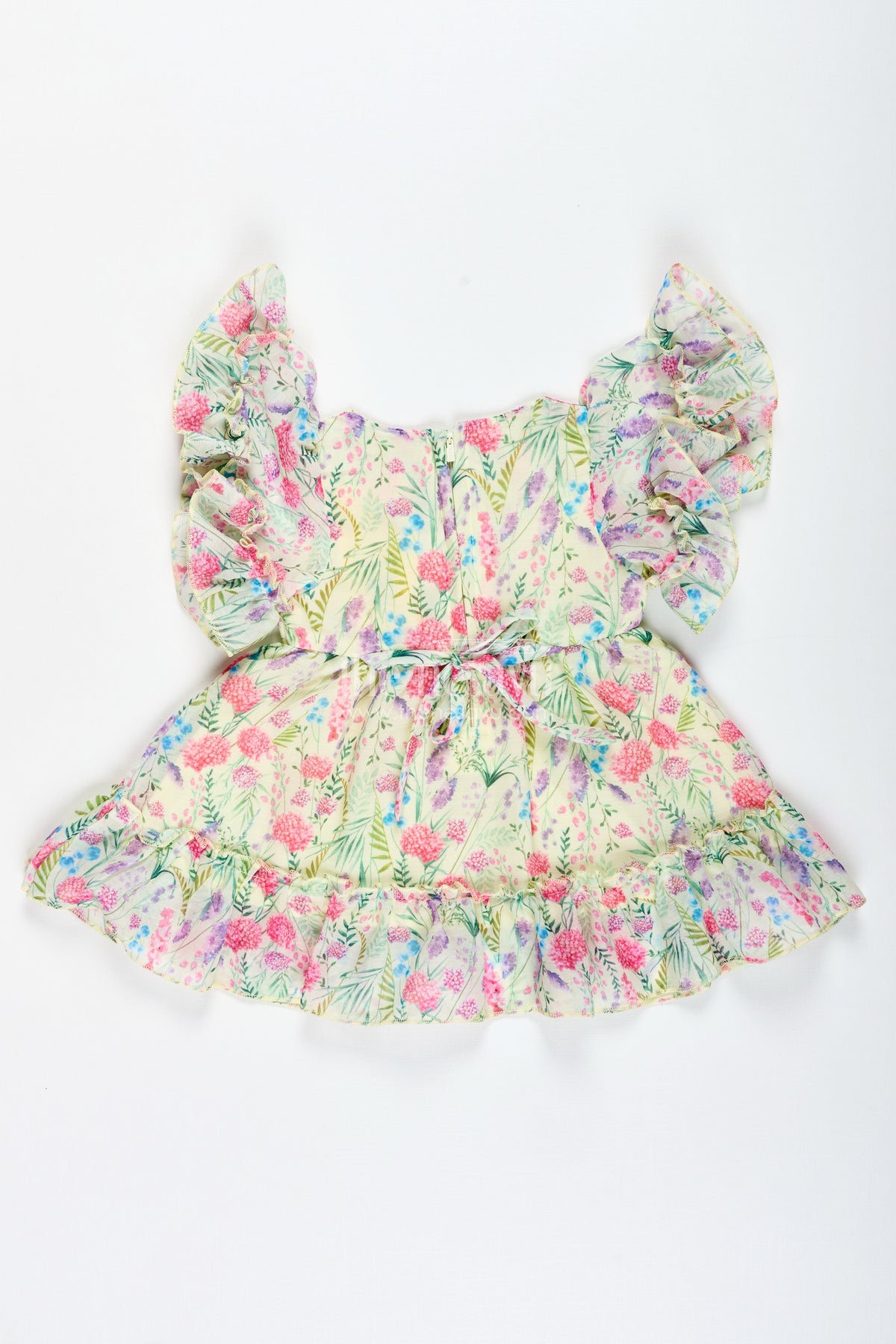 Breathable summer frock for toddler girls with floral print is the perfect choice to brighten up your little one's warm-weather wardrobe. Crafted from lightweight georgette with digital print, this sleeveless frock features a playful mix of pastel florals that evoke a fresh and charming vibe. The airy material keeps your toddler cool, while the ruffle-accented neckline adds a delightful touch. Ideal for daily wear or casual outings, the frock offers a relaxed fit for unrestricted movement and all-day comfort. Easy to maintain and lovely to wear, this piece brings both flair and function to your baby girl's look.