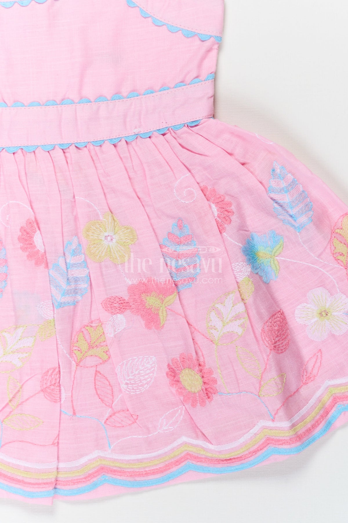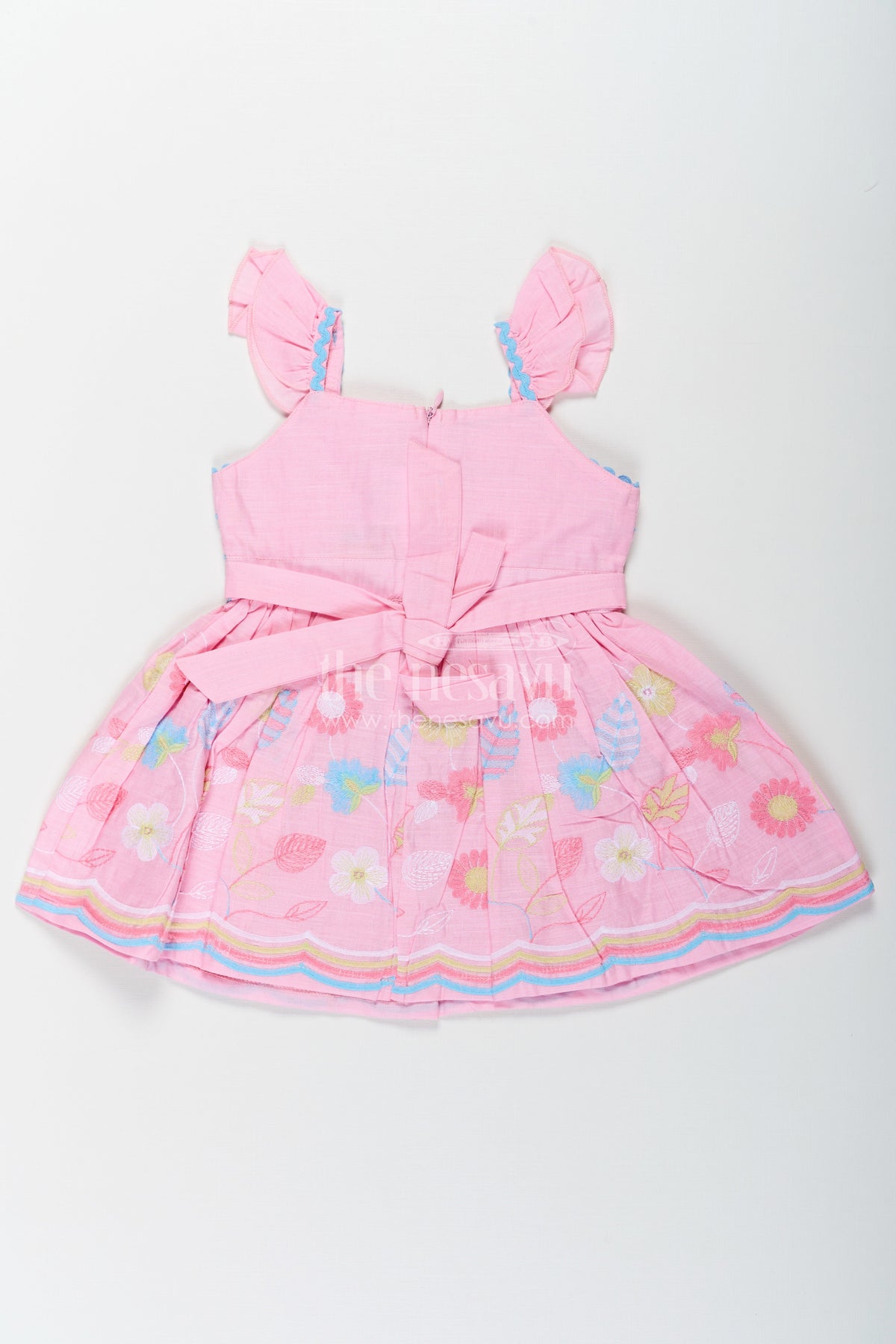This little baby frock is designed to bring out the cutest smiles, with a soft pink cotton base and beautifully embroidered floral bottom in vibrant multicolors. The bodice features delicate scalloped piping and flutter sleeves, making it both playful and elegant. The lightweight fabric ensures comfort for all-day wear, while the pastel tones give it a sweet, calming charm. Ideal for daily outings or special family gatherings, this frock is breathable, stylish, and easy to care for.