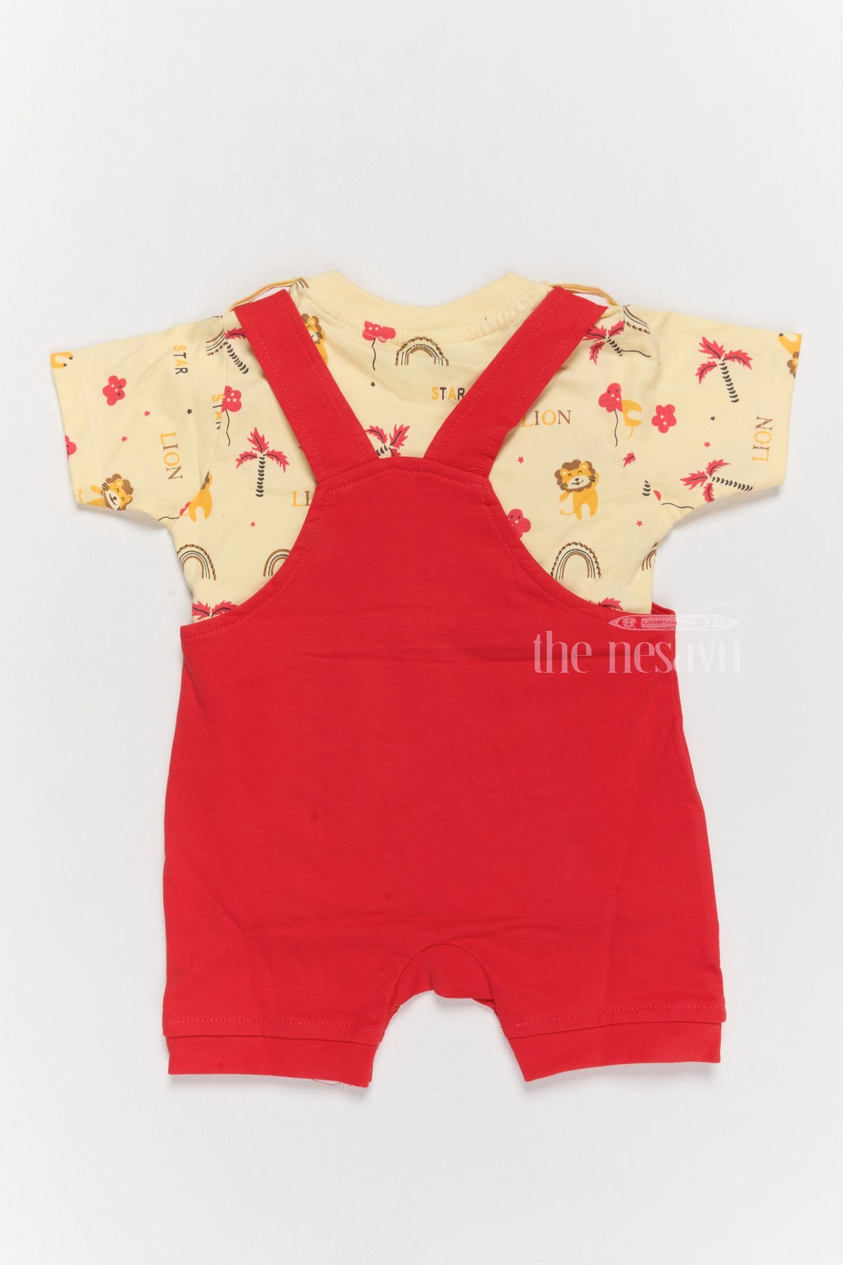 Western Newborn Outfits Red Lion-Themed Dungaree with Printed Yellow T-Shirt