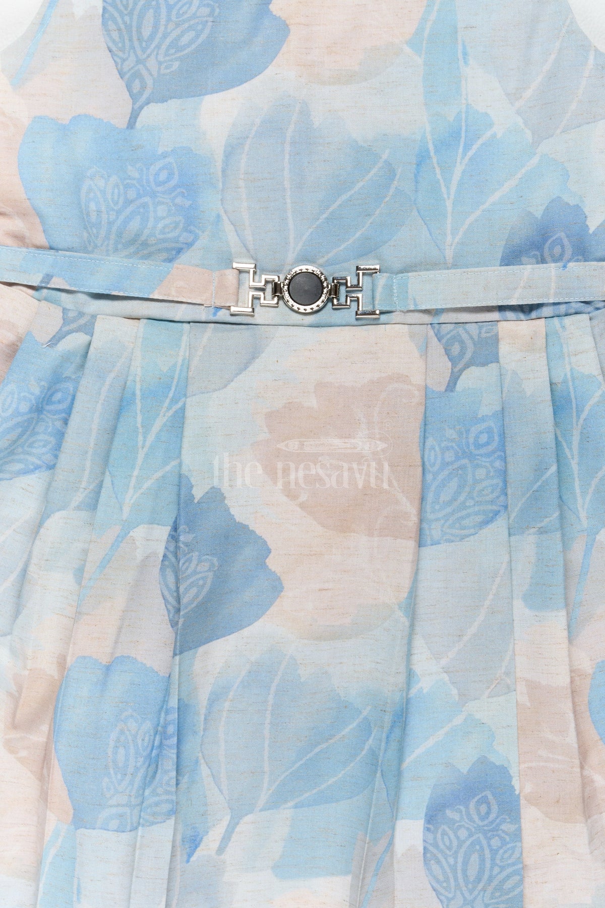 The Nesavu Girls Fancy Frock Girls Cotton Frock with Elegant Blue and Beige Floral Print and Chic Waist Belt Nesavu Nesavu Girls Cotton Frock Elegant Blue Beige Floral Print Chic Waist Belt