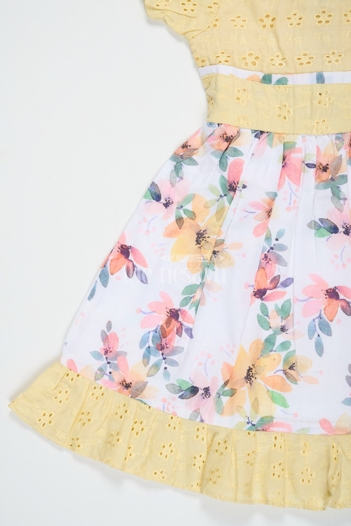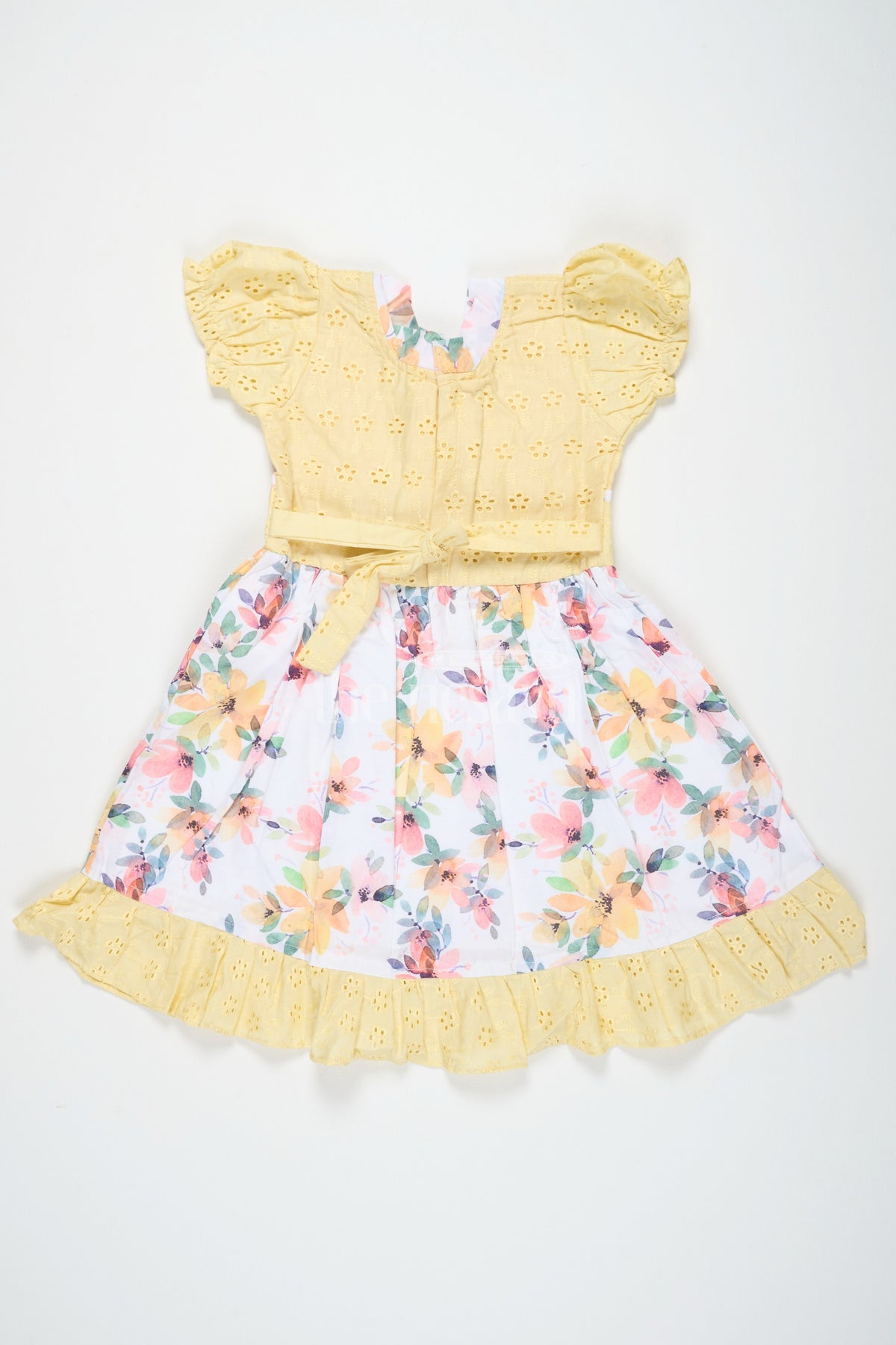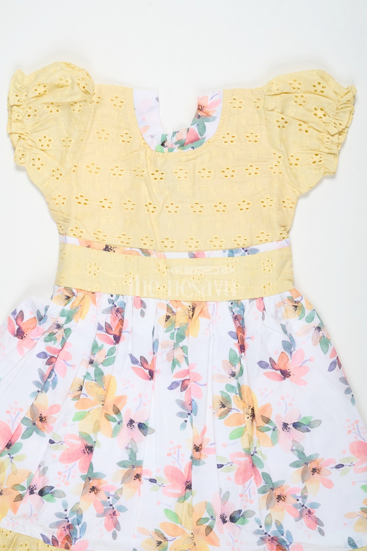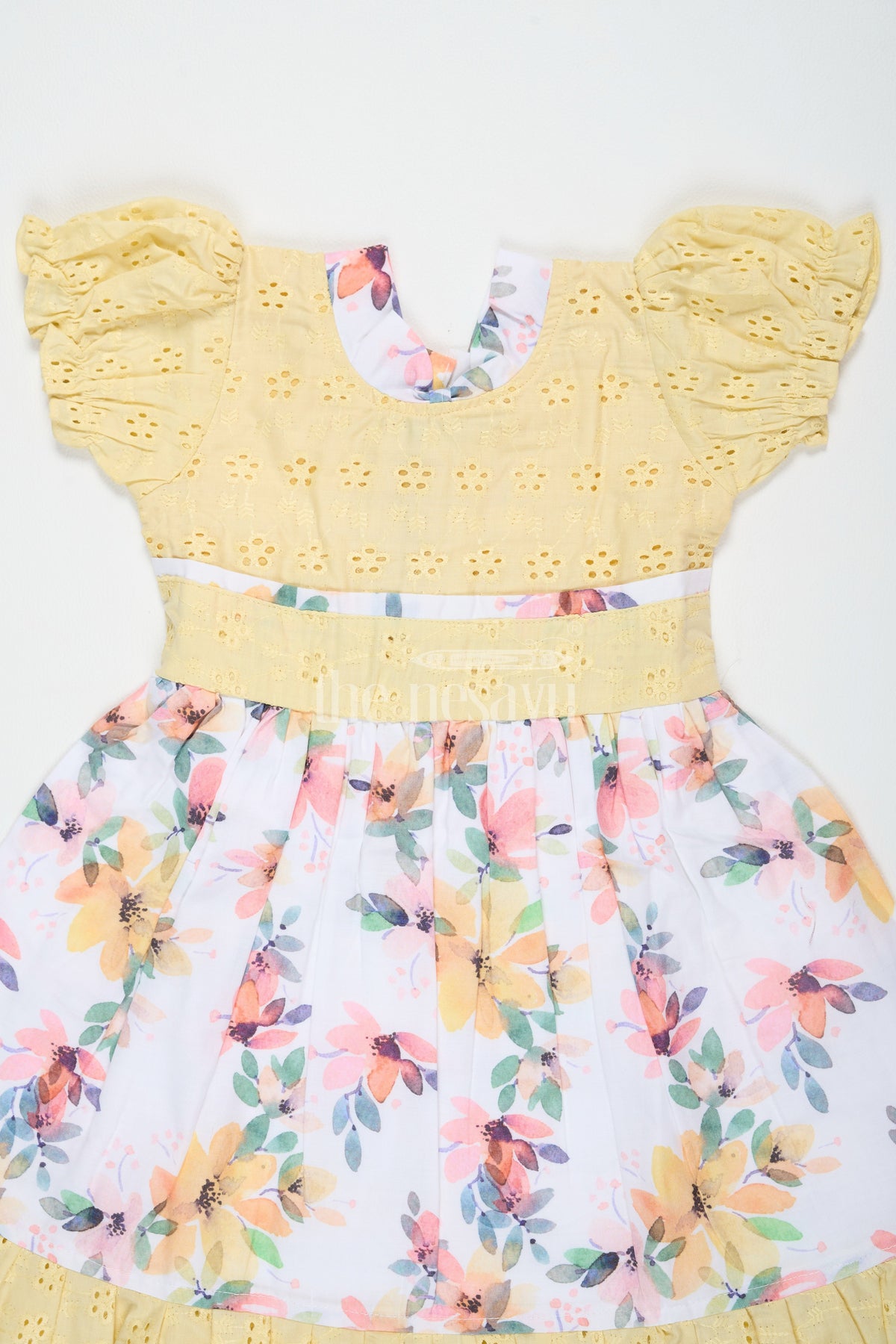 The Nesavu Girls Cotton Frock Girls Cotton Frock with Embroidery Yellow Diwali Festive Dress Nesavu 20 (3Y) / Yellow GFC1449B-20 Nesavu Girls Yellow Cotton Floral Frock Embroidery Perfect Diwali Festive Celebrations