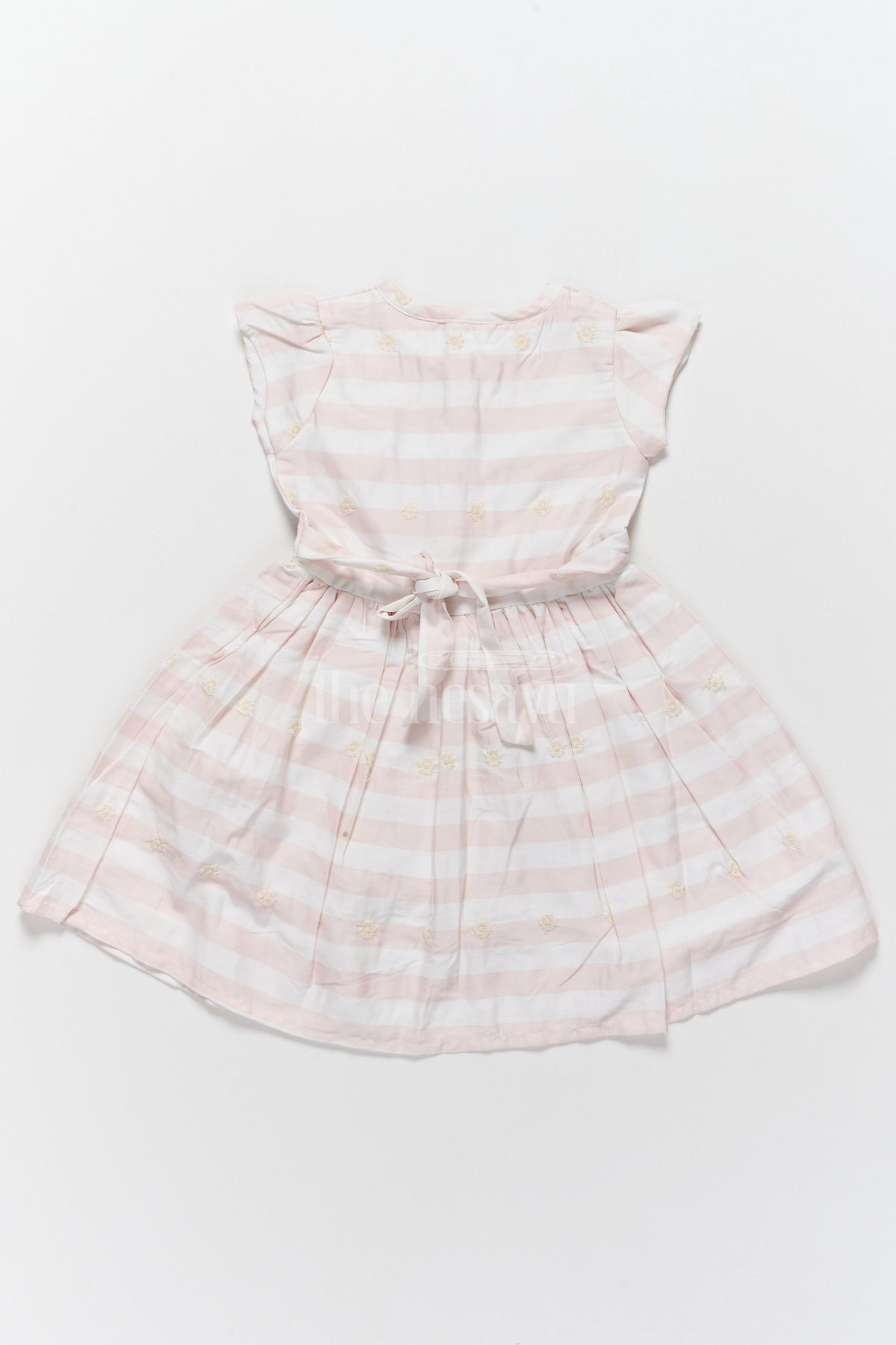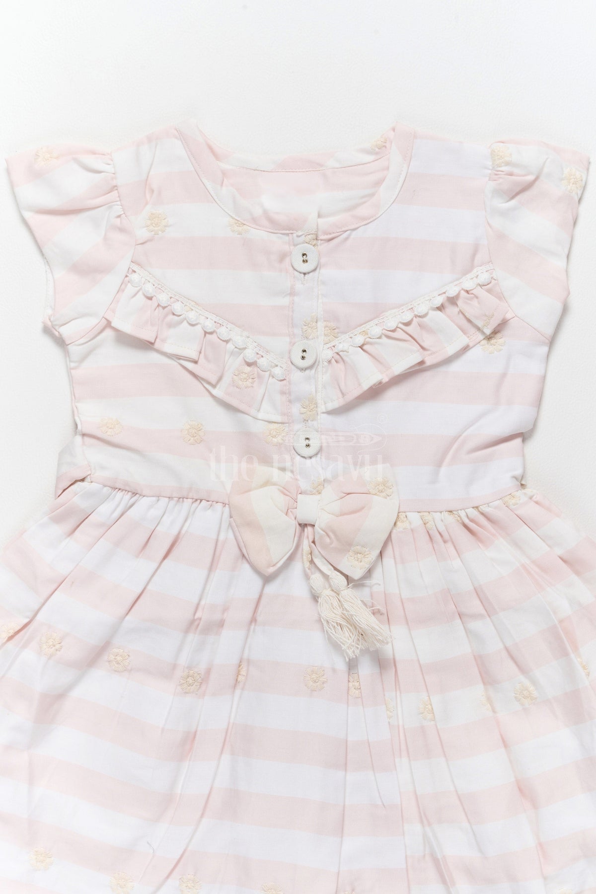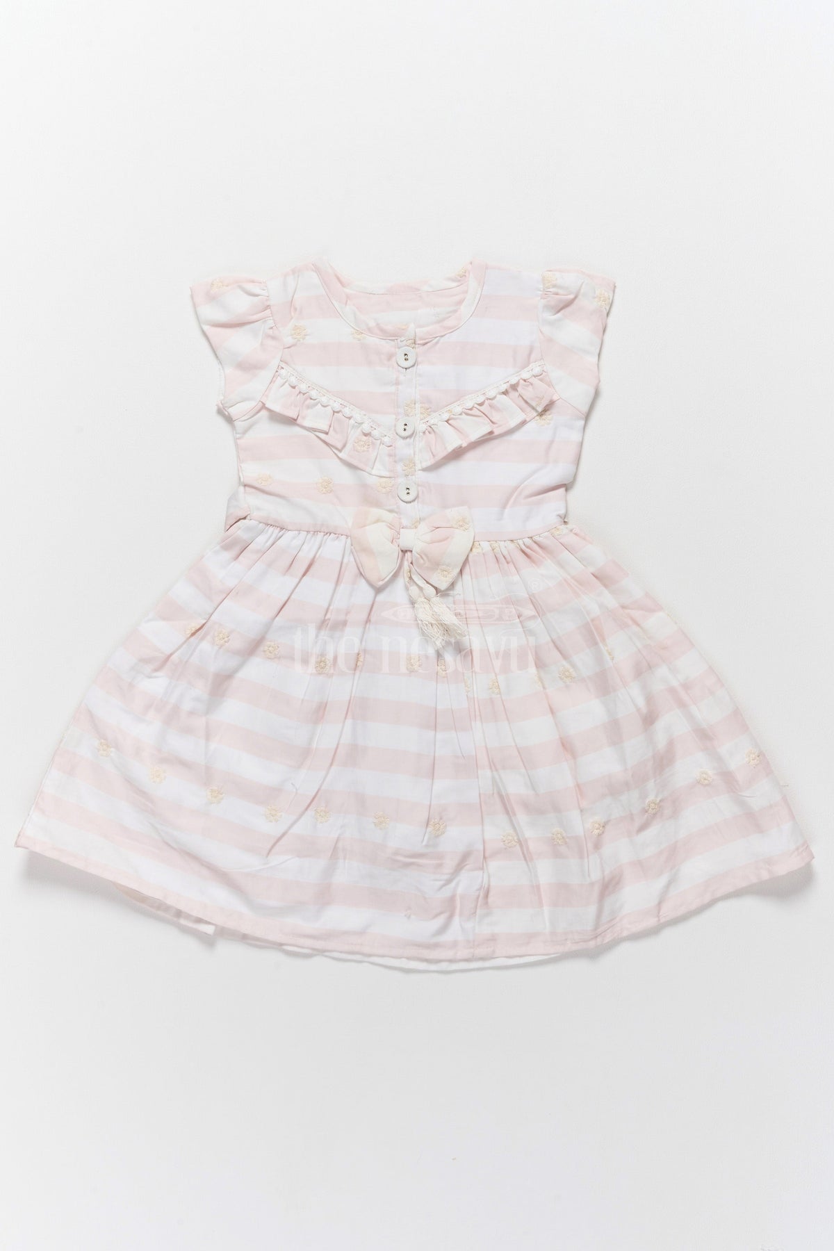 This adorable cotton frock for kids features elegant pink stripes and cute tassel and bow detailing, making it a playful yet stylish outfit. The breathable cotton fabric ensures maximum comfort, while the button-down front provides ease of wear. Perfect for school events or casual outings, this frock offers a blend of functionality and fashion. Its twirl-worthy design will delight your child while ensuring she stays comfortable and trendy.