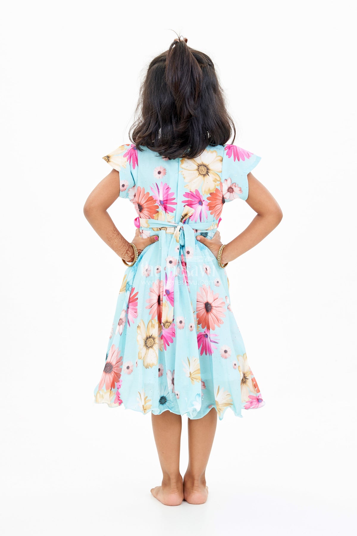 The Nesavu Girls Fancy Frock Georgette Floral Frocks for Girls with Ruffled Sleeves and Satin Waist Belt Nesavu Georgette Floral Frocks Girls Ruffled Sleeves Satin Waist Belt | The Nesavu