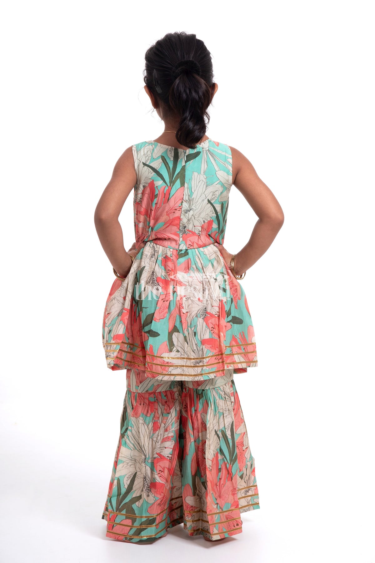 The Nesavu Girls Sharara / Plazo Set Nesavu Modal Silk Printed Sharara Suit Party Wear for Girls Navratri Festive Outfit Nesavu Nesavu Modal Silk Sharara Suit Party Wear for Girls | Navratri Festive Outfit