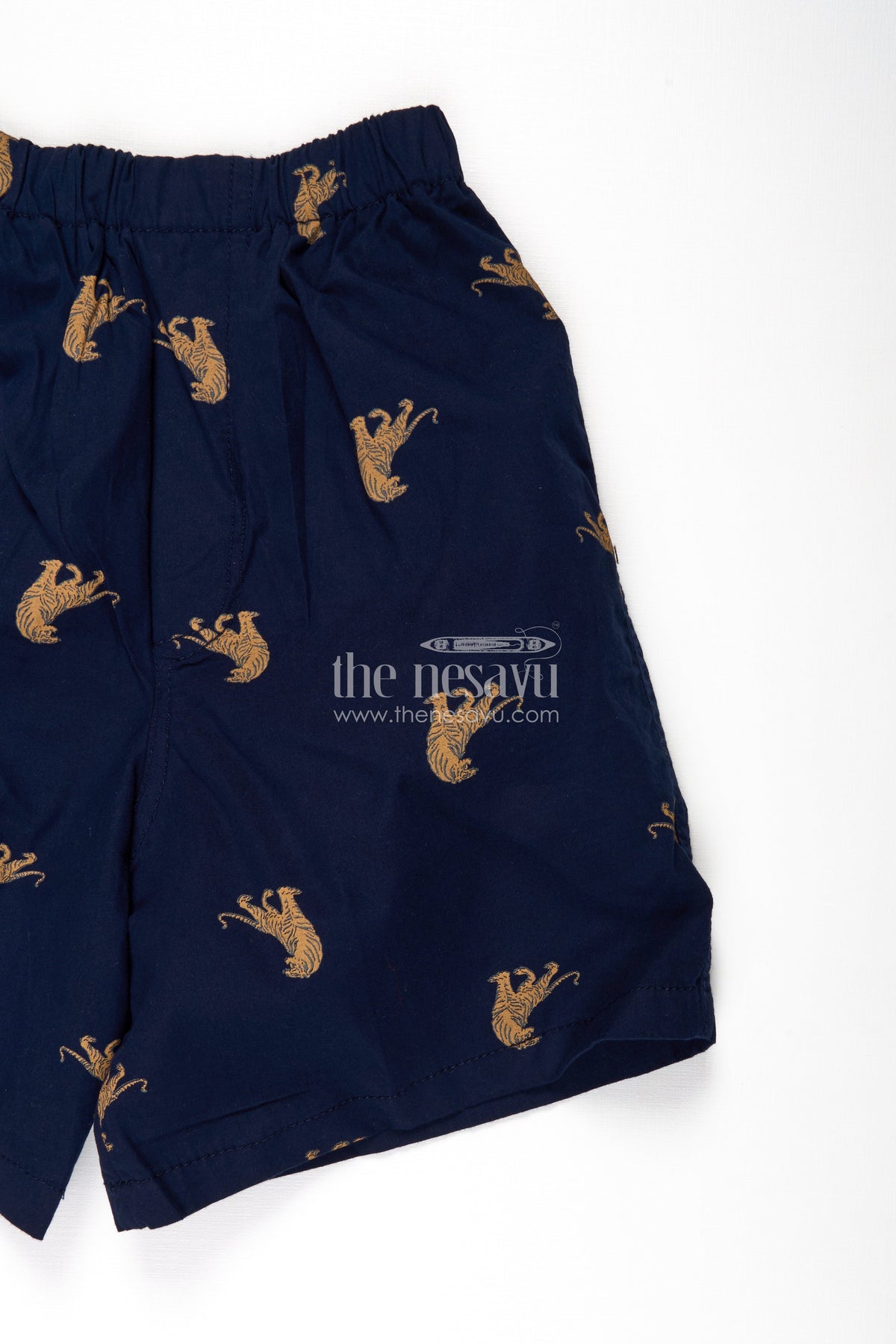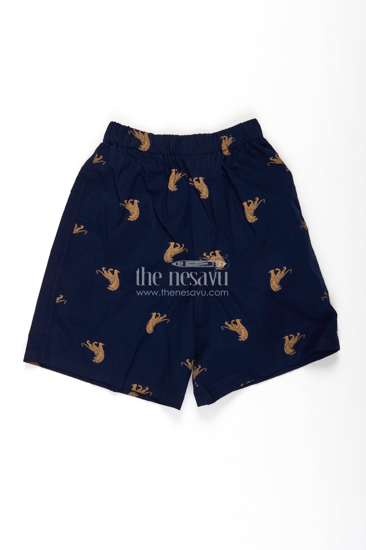 Get your little one ready for sunny adventures in these stylish summer shorts for boys. Made from breathable cotton with all over digital print, these navy blue shorts are adorned with a charming camel motif that brings a fun, desert-inspired flair. Ideal for warm weather, the lightweight fabric and relaxed fit provide superior comfort for playdates, picnics, or just lounging at home. The elastic waistband ensures a secure yet flexible fit, letting your child move with ease all day long. These summer shorts are not only a visual treat but also a dependable choice for durability and ease of care.