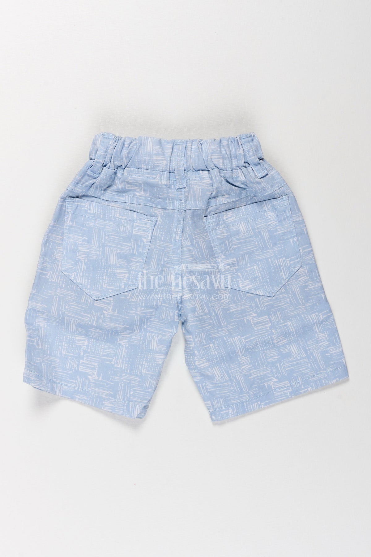 Boys Cotton Blue Shorts with Digital Print and Adjustable Drawstring for Playful Comfort