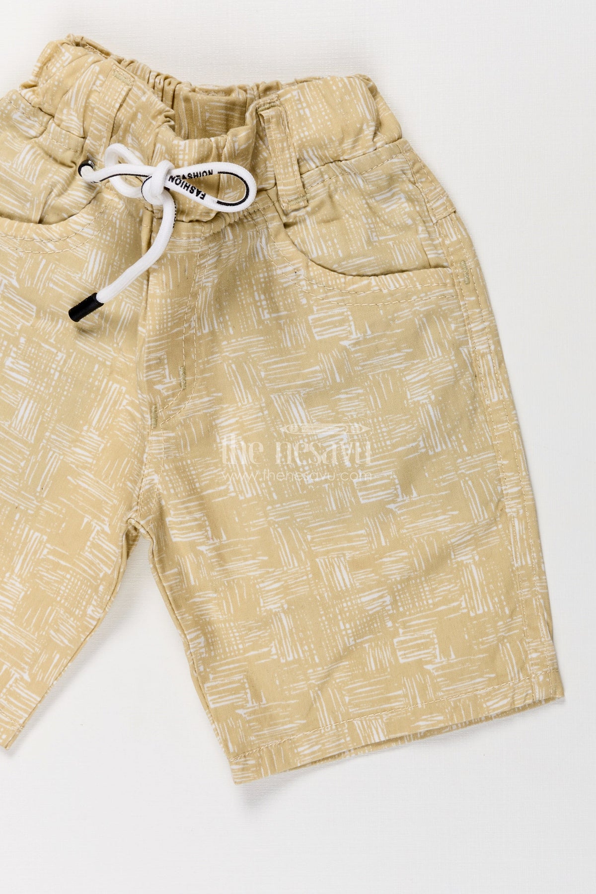 casual shorts outfit like this one from Nesavu brings a splash of fun and functionality into boys’ everyday fashion. Crafted from soft beige cotton with a textured white digital print, these shorts create a relaxed, modern vibe perfect for active kids. The elastic waistband and matching white drawstring offer a comfy, adjustable fit for growing boys, while the side pockets enhance practicality. Lightweight and easy to wear, these shorts ensure freedom of movement for play, adventure, or just lounging. Whether paired with a graphic tee or polo, this outfit sets a stylish tone. Built to last through endless washes, these shorts are a go-to choice for busy days.