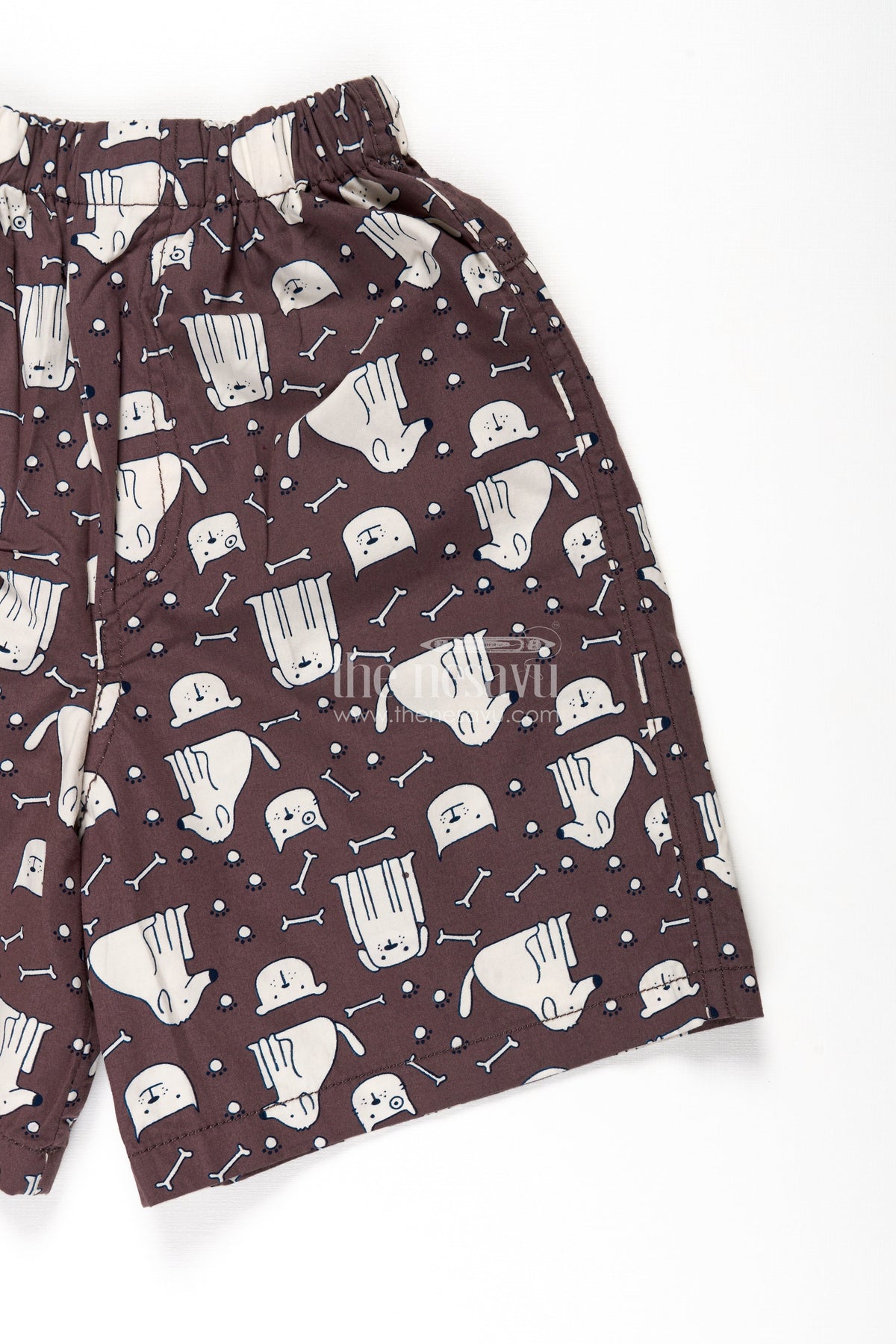 Boys Cotton Shorts in Charcoal with Cute Character Motifs and Soft Digital Printed Fabric