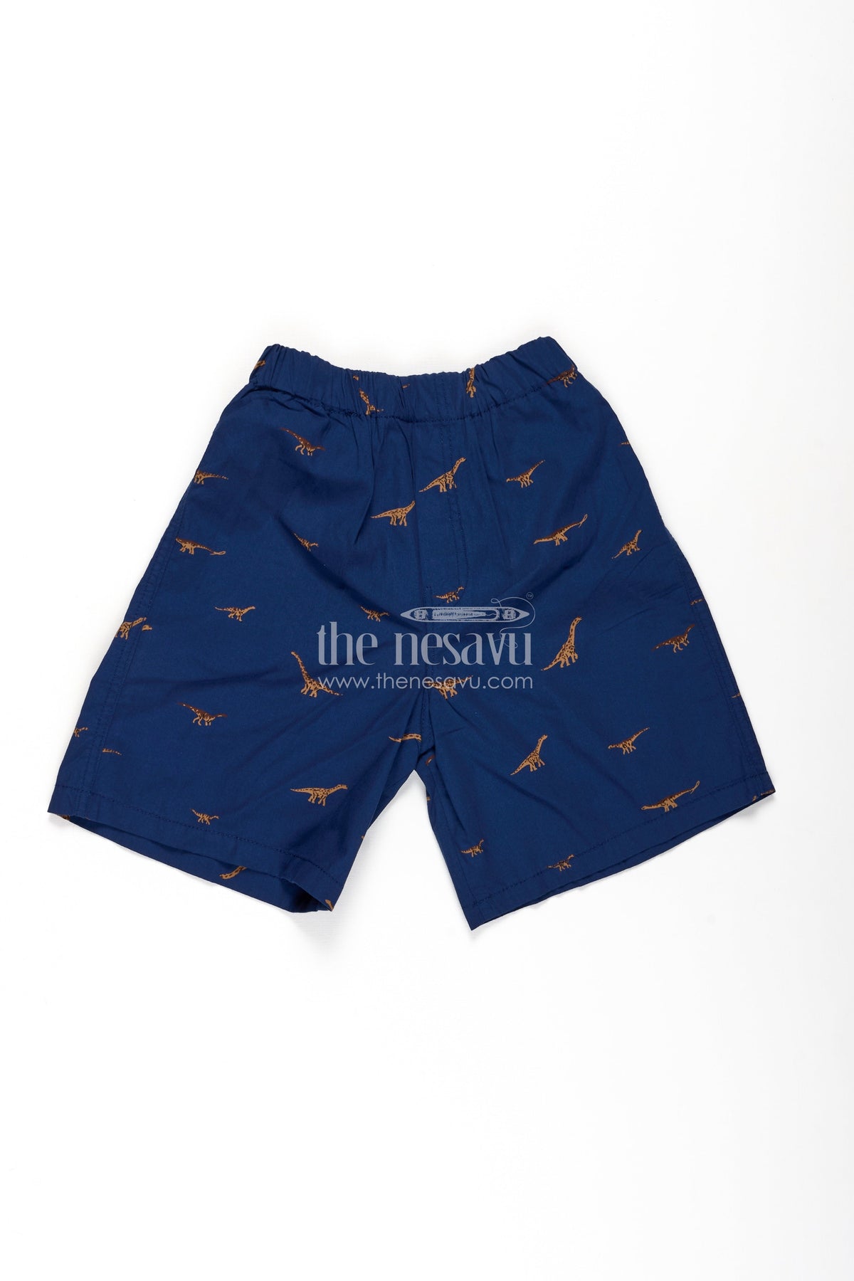 Boys Navy Blue Cotton Animal Print Shorts with Dinosaur Motifs and Soft Elastic Fit for Daily Play
