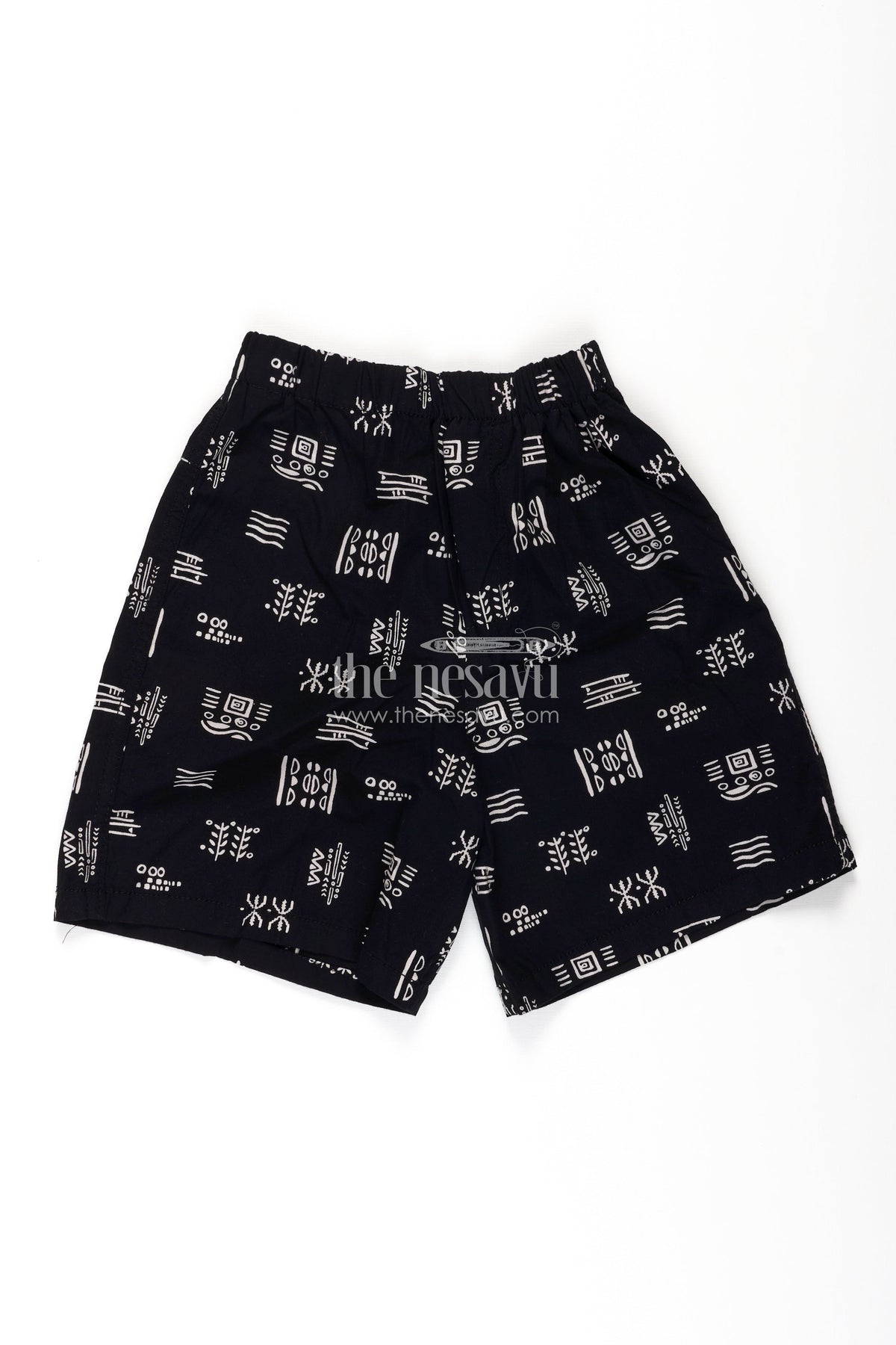 Let your boy stand out in style with these tiny shorts featuring a bold navy base and intricate abstract tribal digital print. Designed from soft, breathable cotton, these shorts are ideal for high-energy play and relaxed days alike. The elastic waistband ensures comfort while allowing easy movement, and the unique print adds a cultural, creative twist to casual wear. Whether paired with a solid tee or tank top, these shorts deliver effortless cool and all-day comfort.
