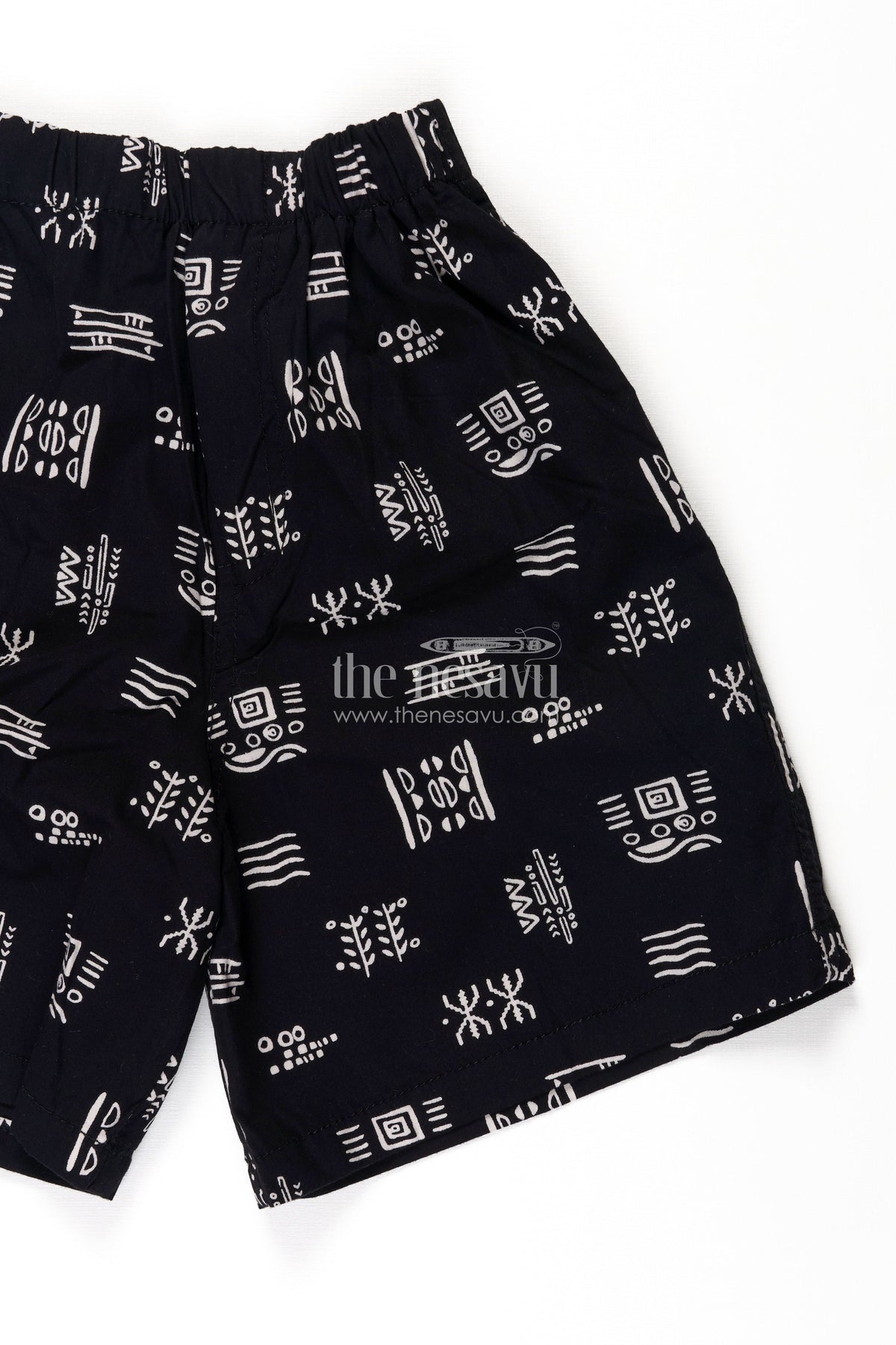 Boys Navy Cotton Tiny Shorts with Abstract Tribal Digital Print and All Day Soft Fit Waistband