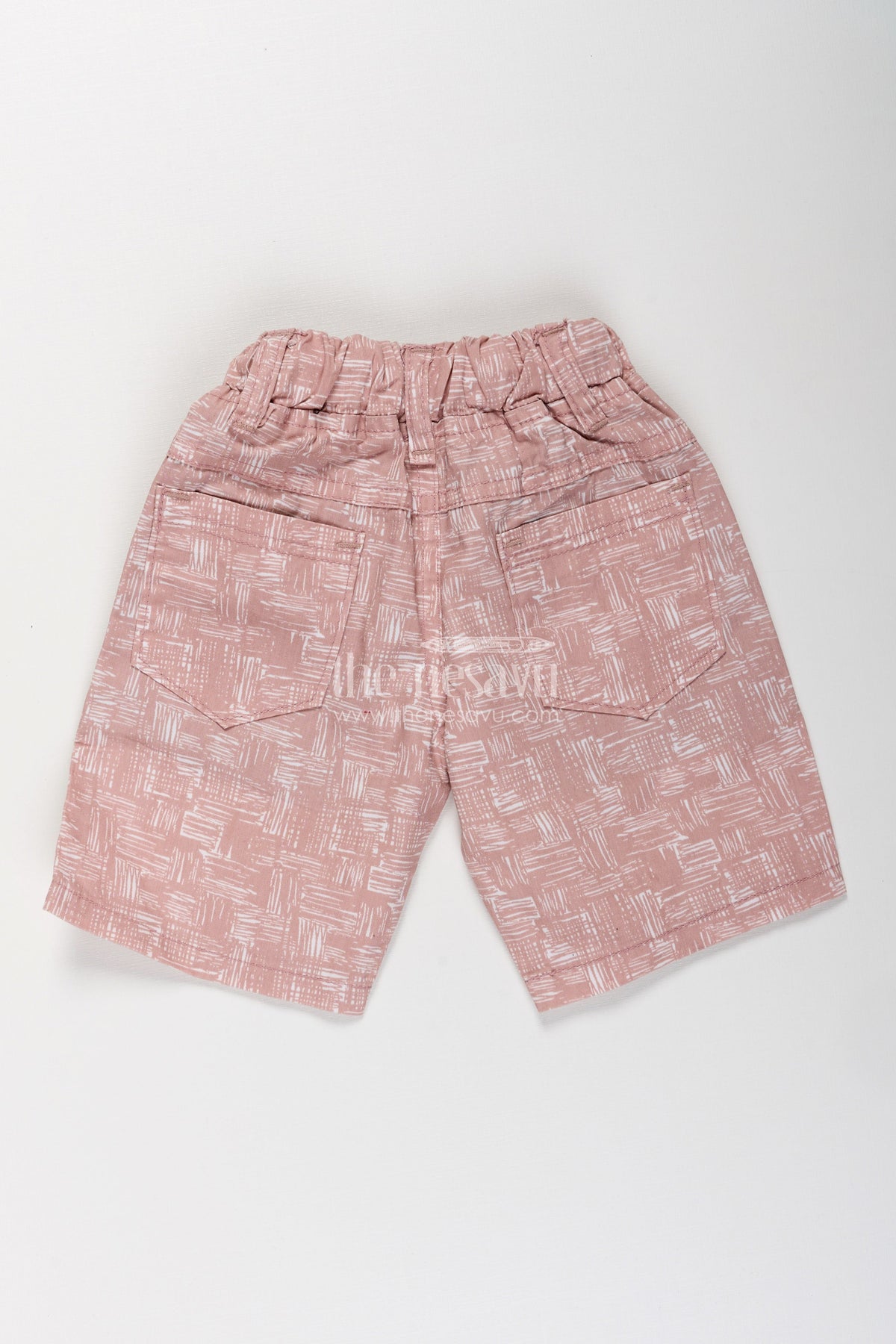 printed shorts designed by Nesavu offer a vibrant mix of fashion and function, ideal for young trendsetters. The dusty rose base paired with dynamic white digital prints creates a modern, urban-inspired look that’s perfect for any casual occasion. These cotton shorts are soft and breathable, with a flexible waistband and contrasting white drawstring that ensures comfort during all-day wear. Designed for energetic boys, the shorts feature deep front pockets and solid construction for active lifestyles. Whether he’s running errands with mom or off to a birthday bash, these printed shorts keep him comfy and cool. Easy to clean and quick to dry, they’re a hassle-free addition to any boy’s wardrobe.