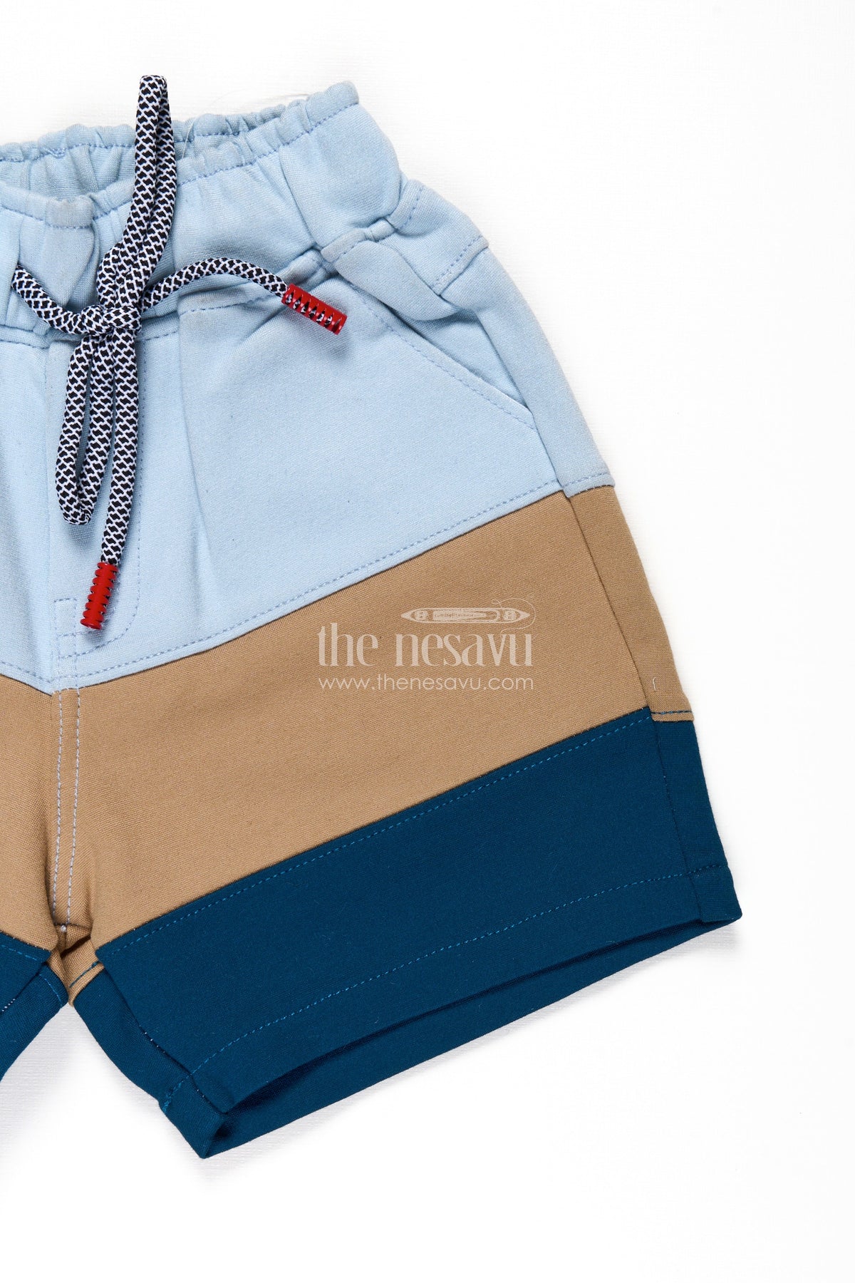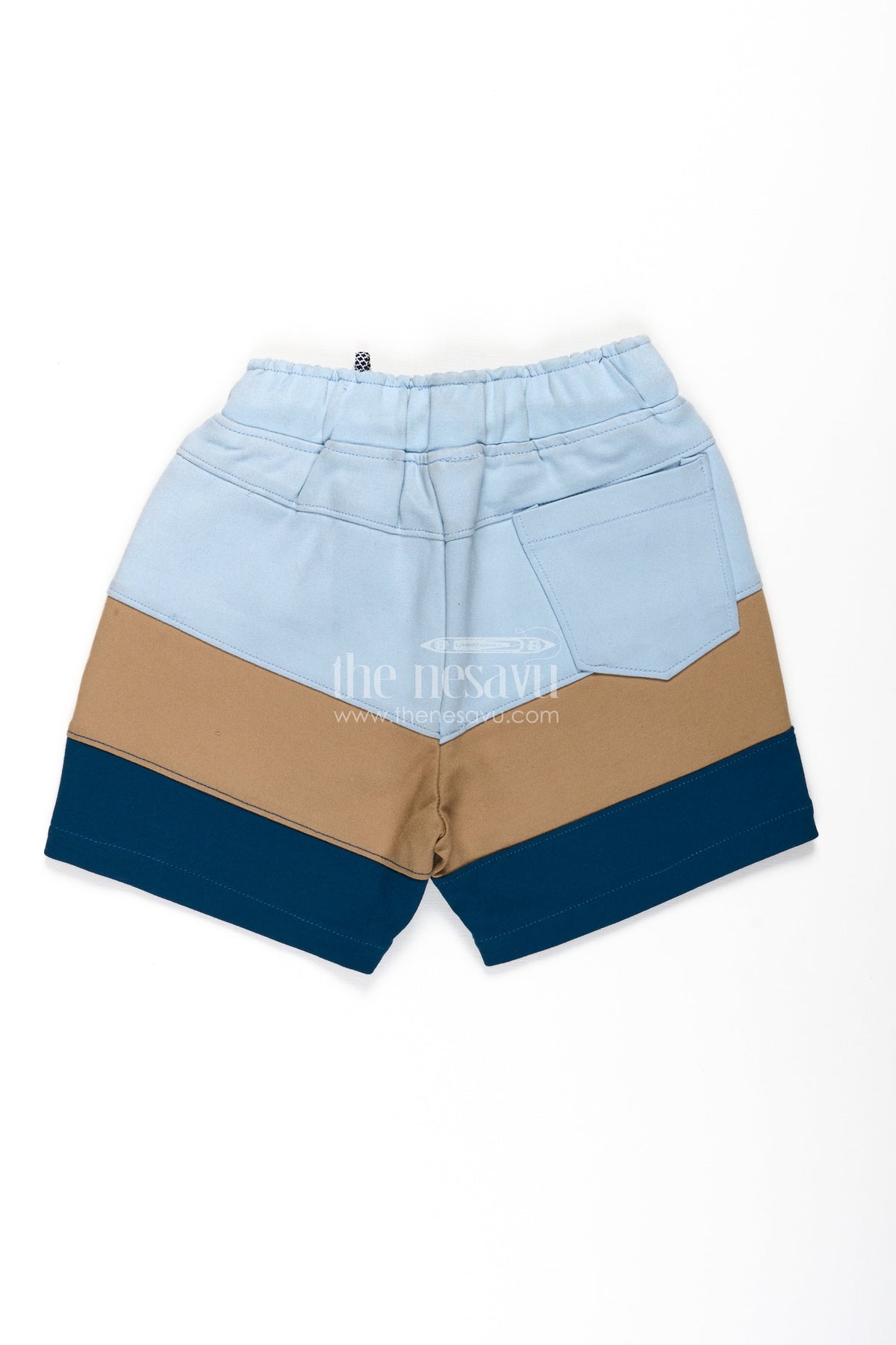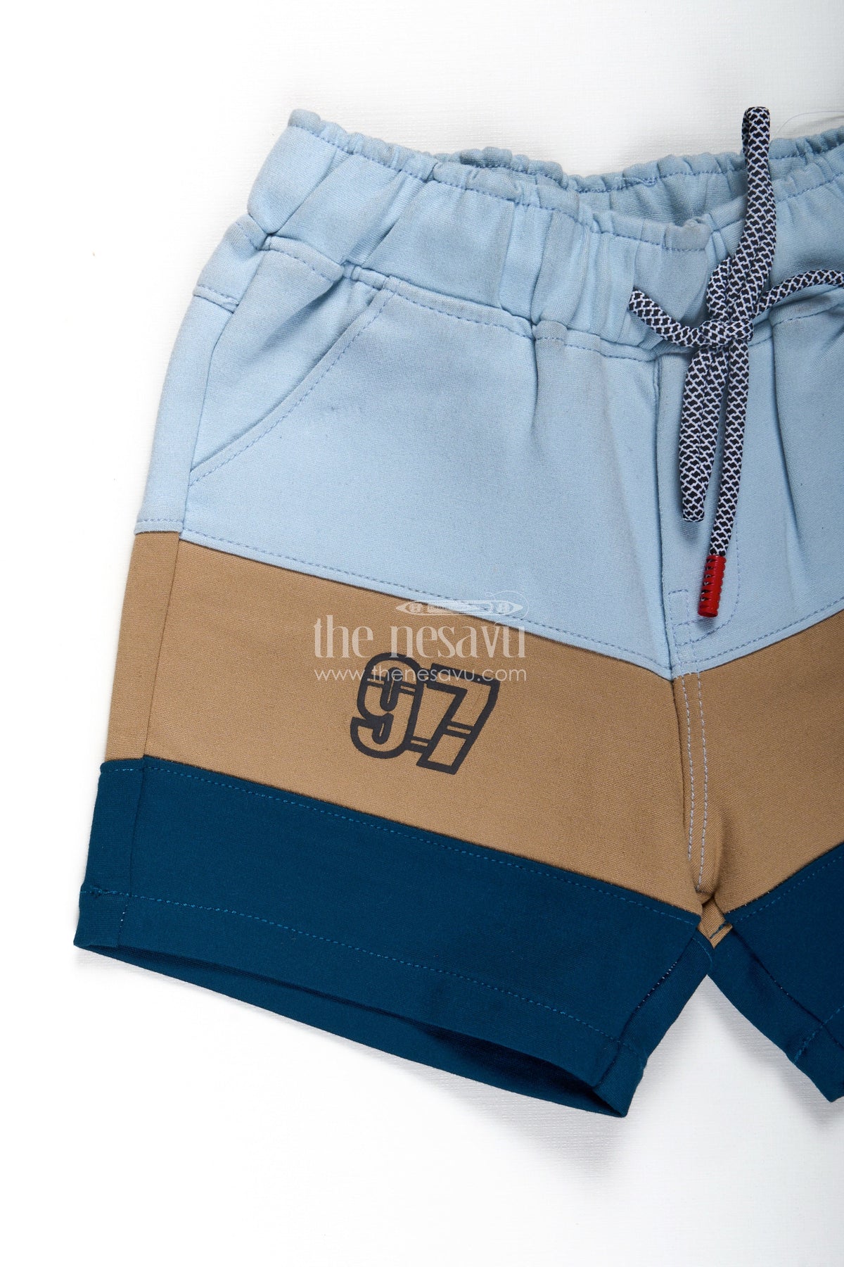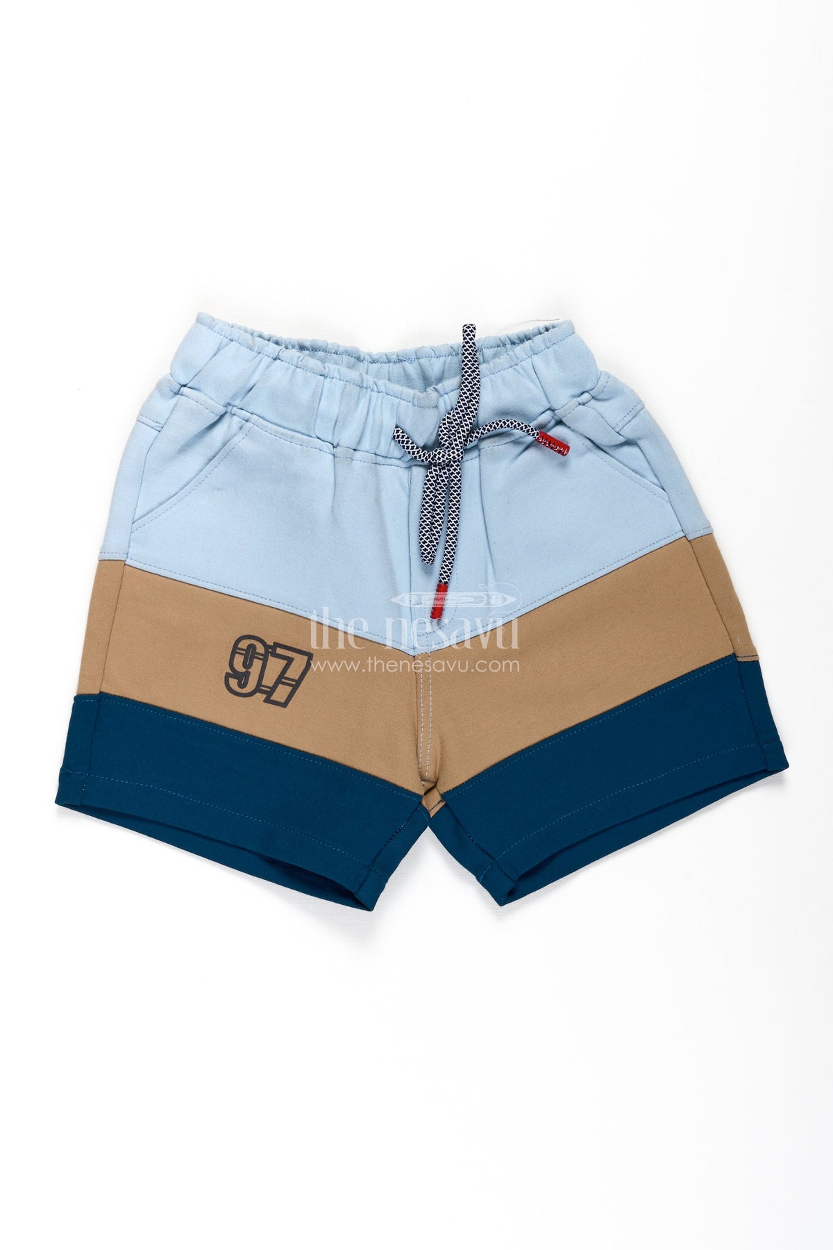 Shorts casual beach outfits from Nesavu are perfect for boys who enjoy active days under the sun. Featuring a trendy blend of sky blue, olive, and teal, these colorblock shorts offer a soft cotton blend construction for superior comfort. The stylish “97” detail adds a sporty edge, while the elastic waistband with drawstring ensures a custom fit. These shorts are ideal for beach outings, weekend play, or lounging in warm weather. Their lightweight feel and vibrant style make them a summer favorite for boys of all ages.