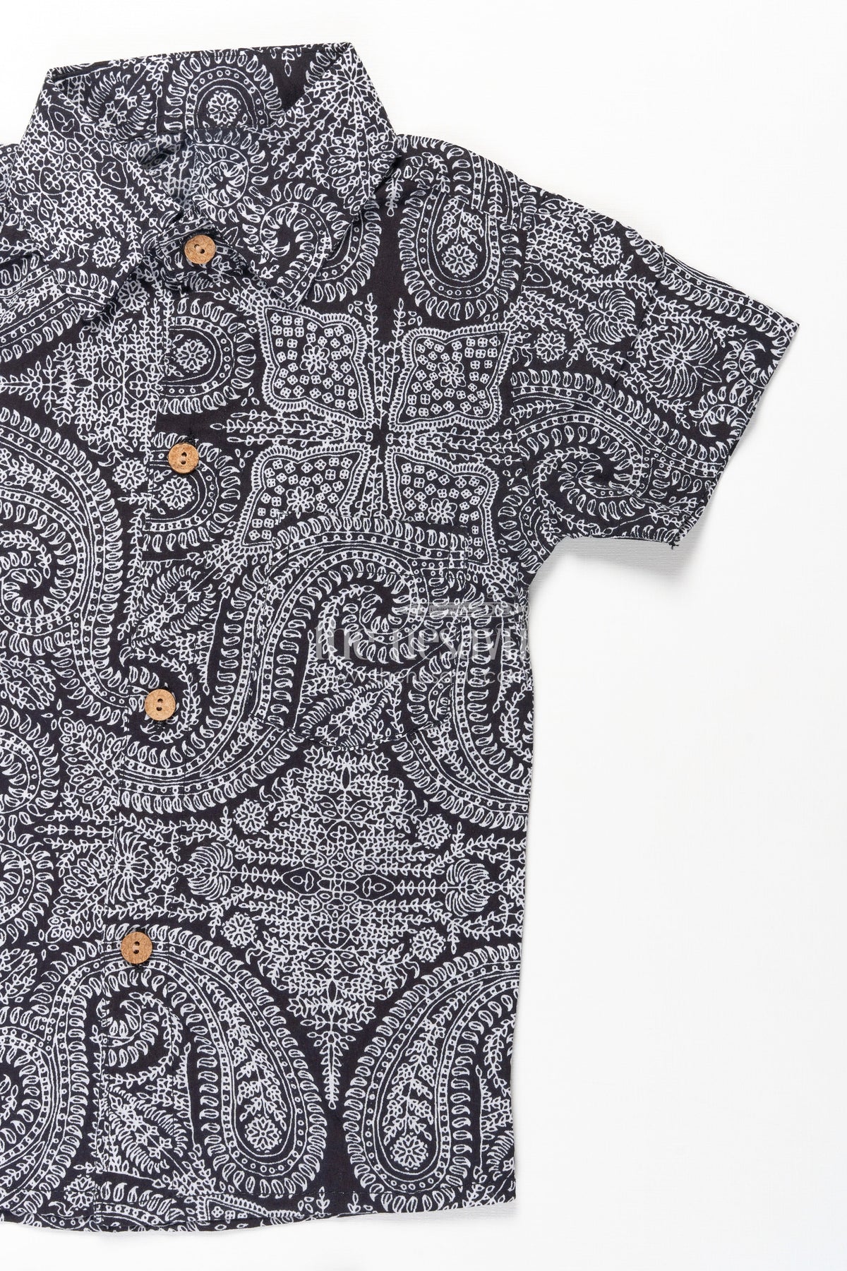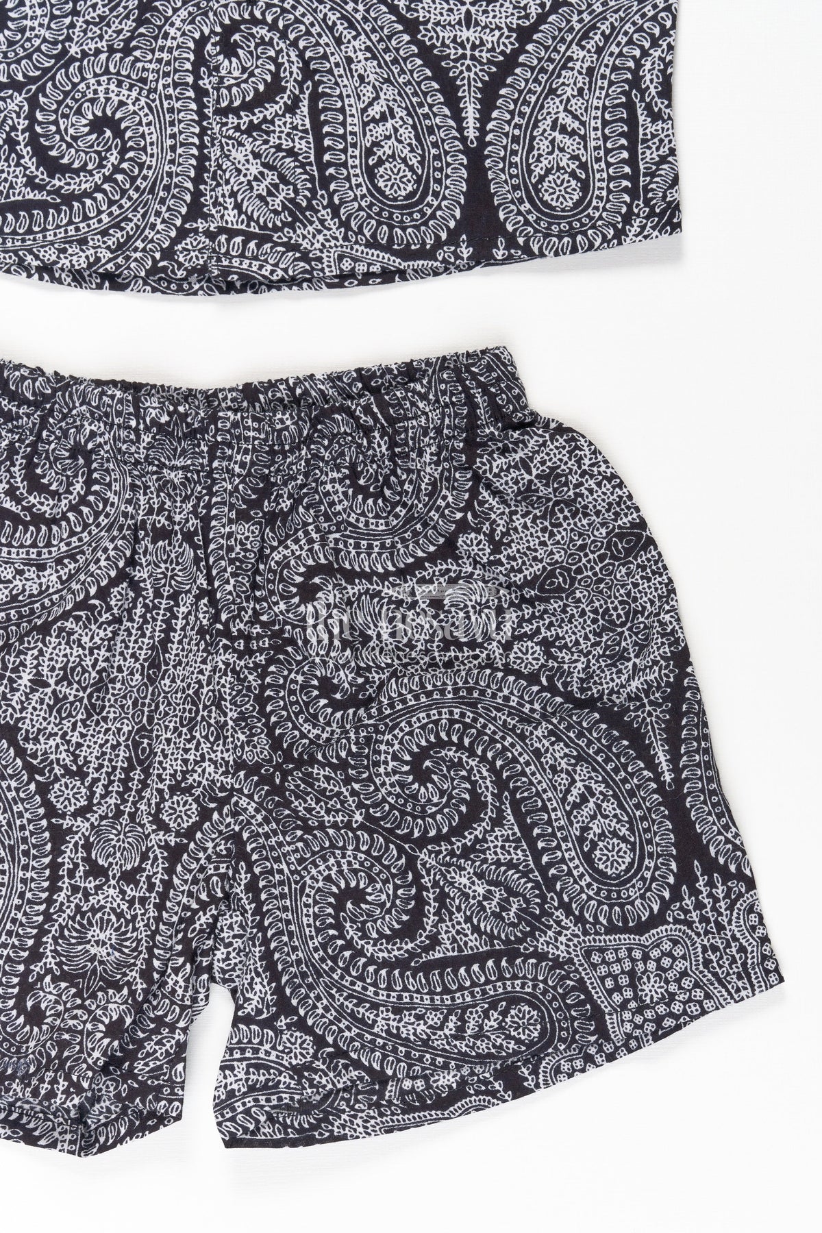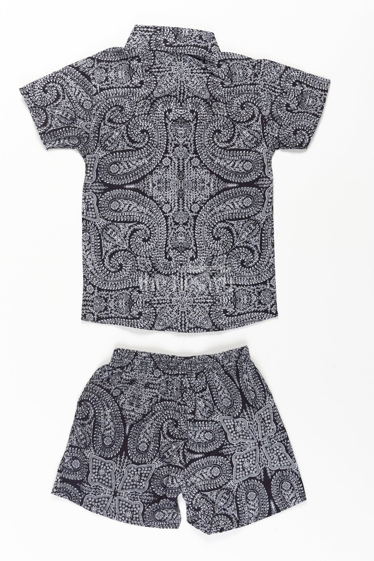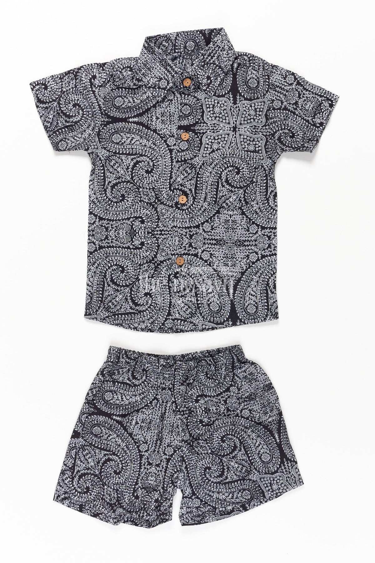 Boys Black Casual Dress Cotton Set with Paisley Digital Print Shirt and Matching Shorts