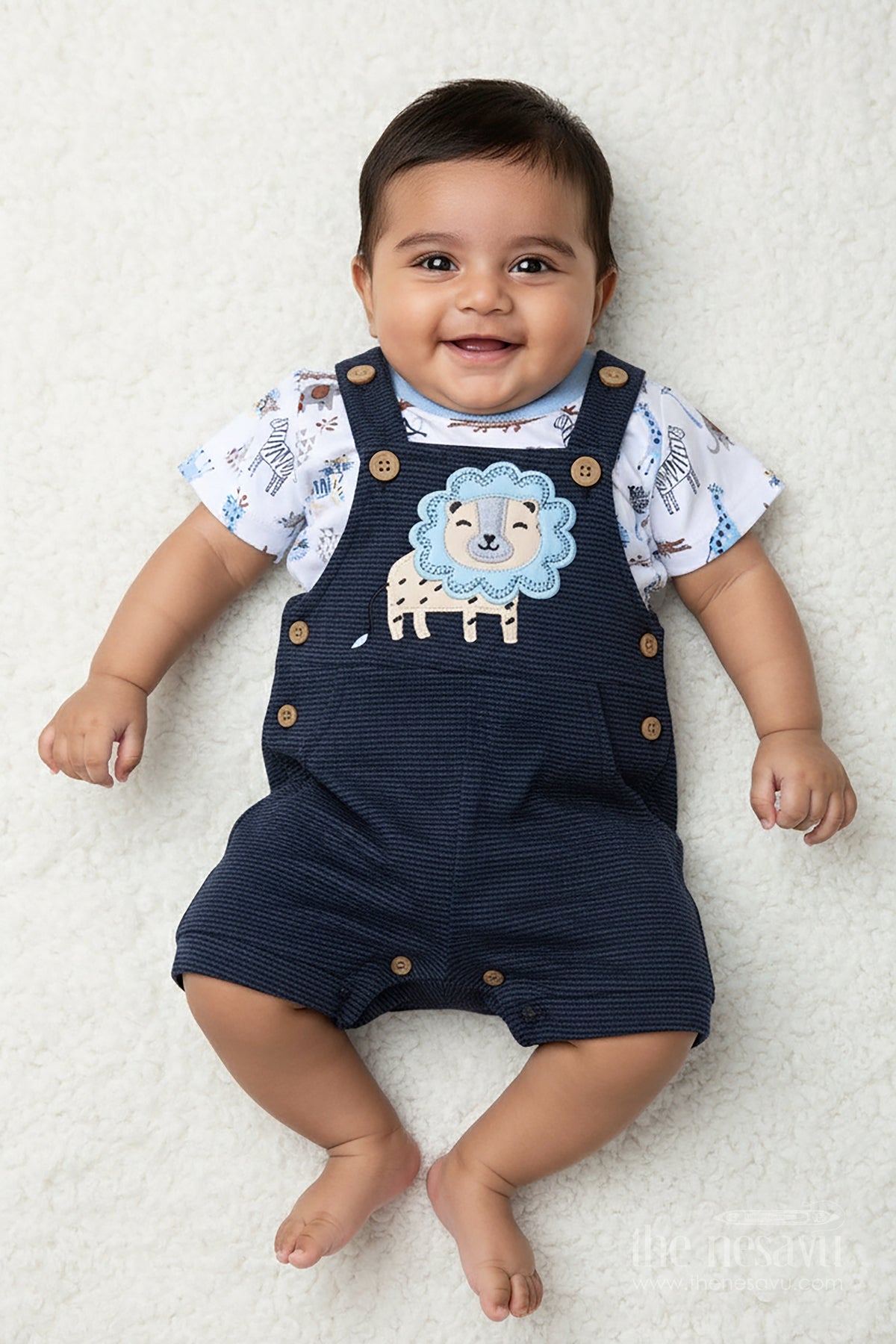 The digital printing t shirts and pant set is a creative, eye-catching outfit made for little boys who love animal adventures. Crafted in cotton corduroy with animal digital print, this set includes denim blue overalls with a cheerful giraffe face patch, paired with a white T-shirt adorned with colorful animal prints. The durable corduroy fabric ensures long-lasting comfort, while the playful digital prints spark imagination. Perfect for day-to-day outings, this coordinated outfit is both cute and easy to wear. With its buttoned straps and roomy fit, this set allows freedom of movement for all kinds of kid-approved activities.