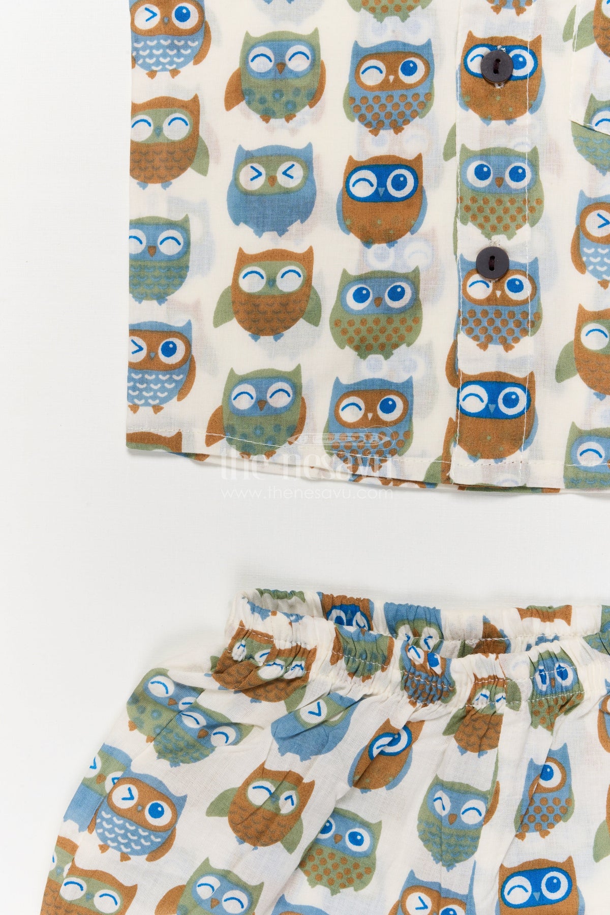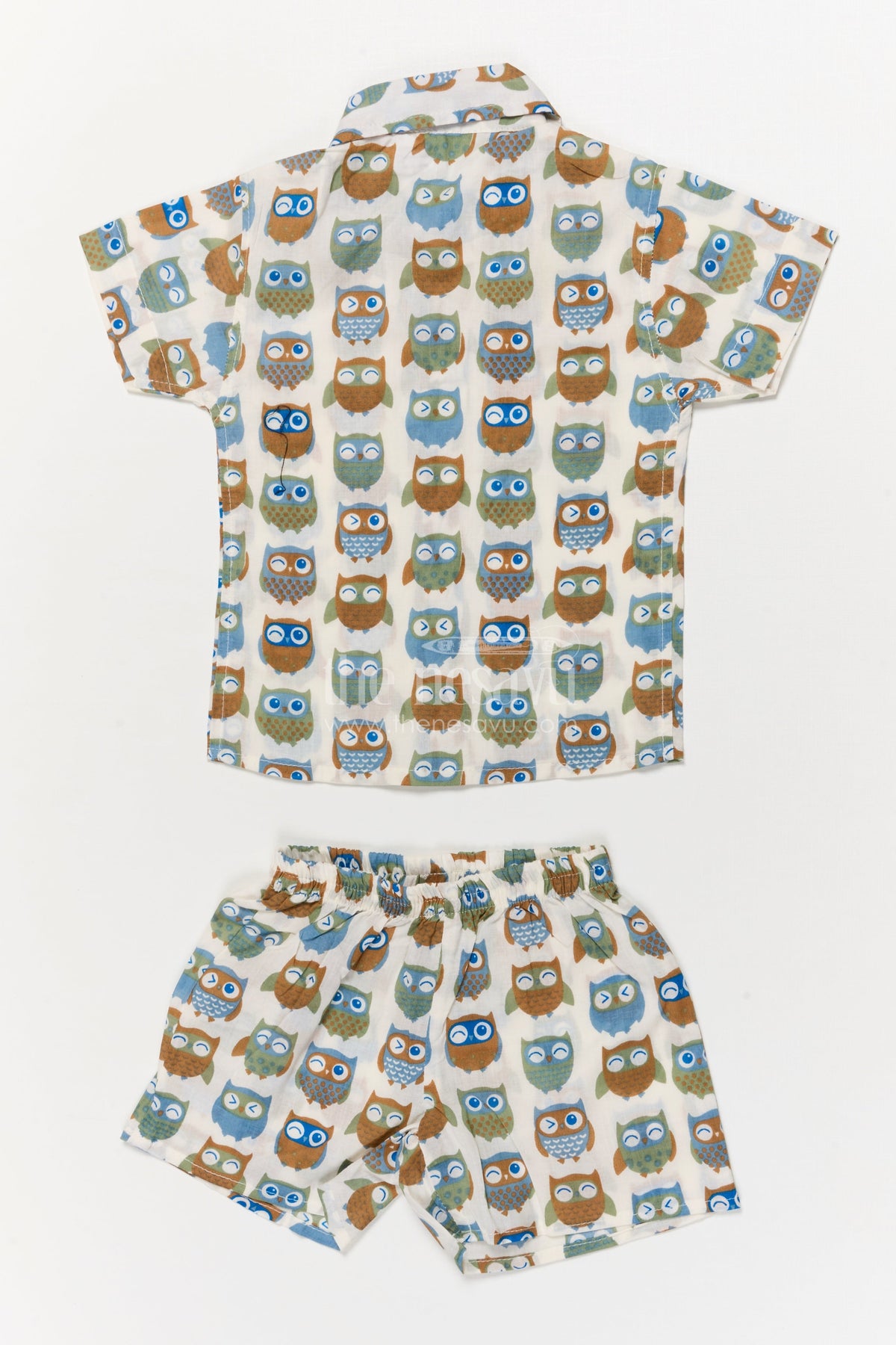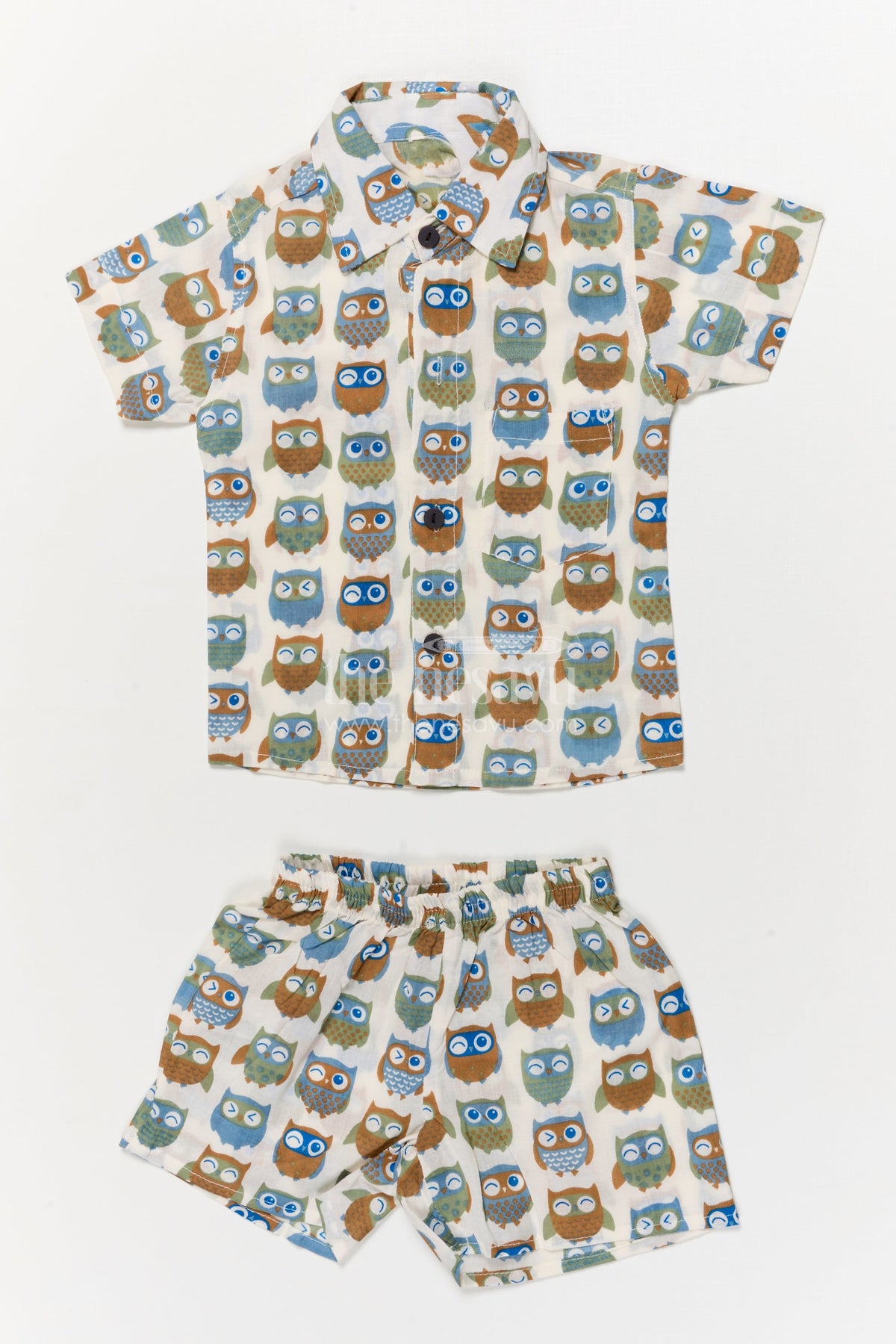 - This toddler boys cotton set with quirky owl print is perfect for fun-filled casual days