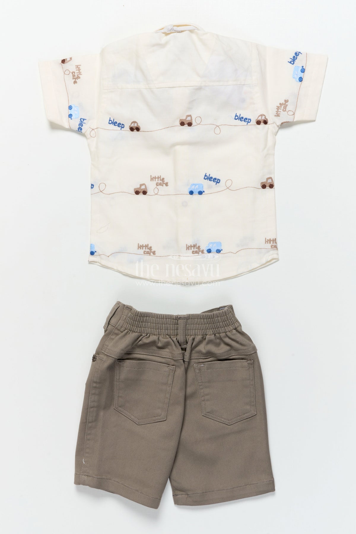 The Nesavu Boys Casual Set Boys Car-Themed Shirt and Shorts Set for Birthdays and Outings Nesavu 14 (6M) / Cream BCS443B-14 Nesavu boys car embroidered shirt shorts set bow tie birthdays family outings