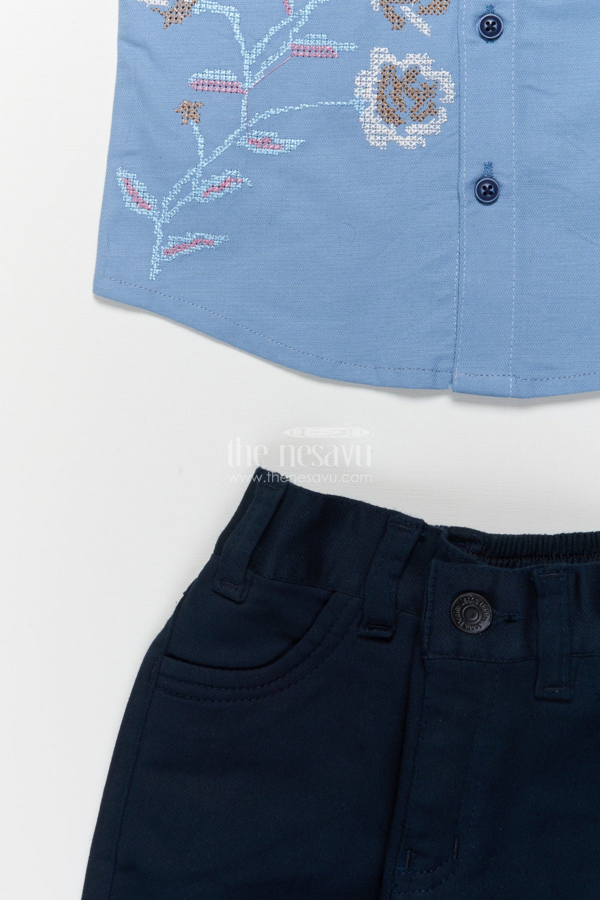- Crafted in breathable cotton with neat thread embroidery on the shirt