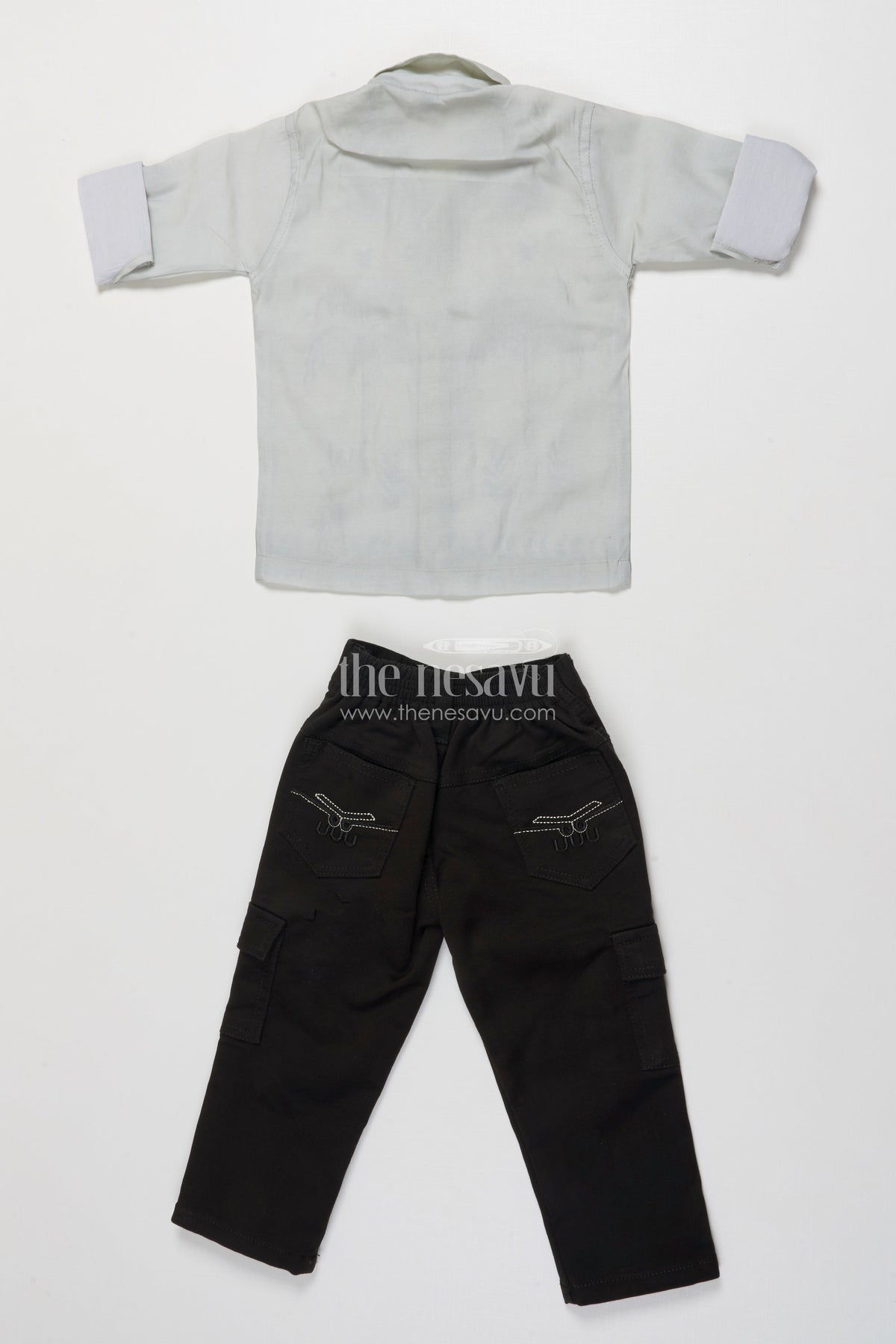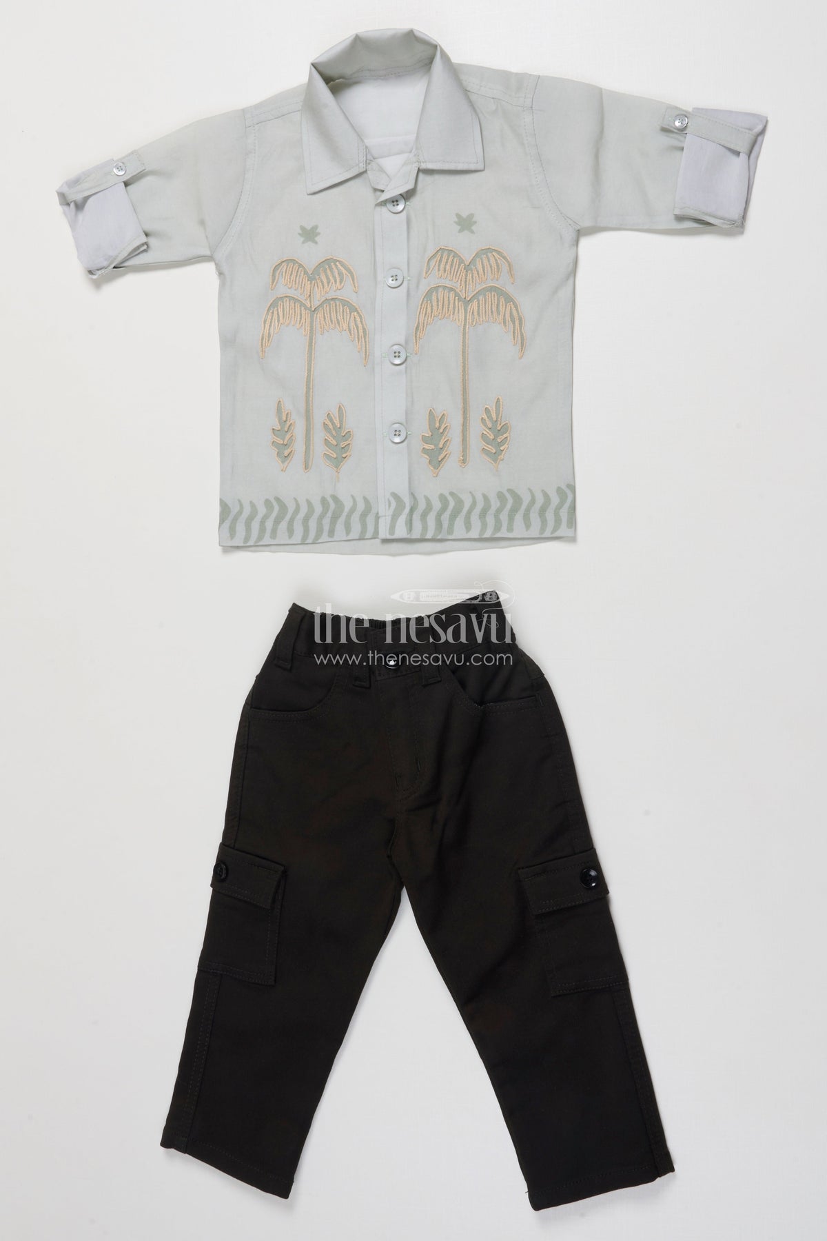 Boys Cotton Casual Wear Set with Embroidered Palm Motifs
