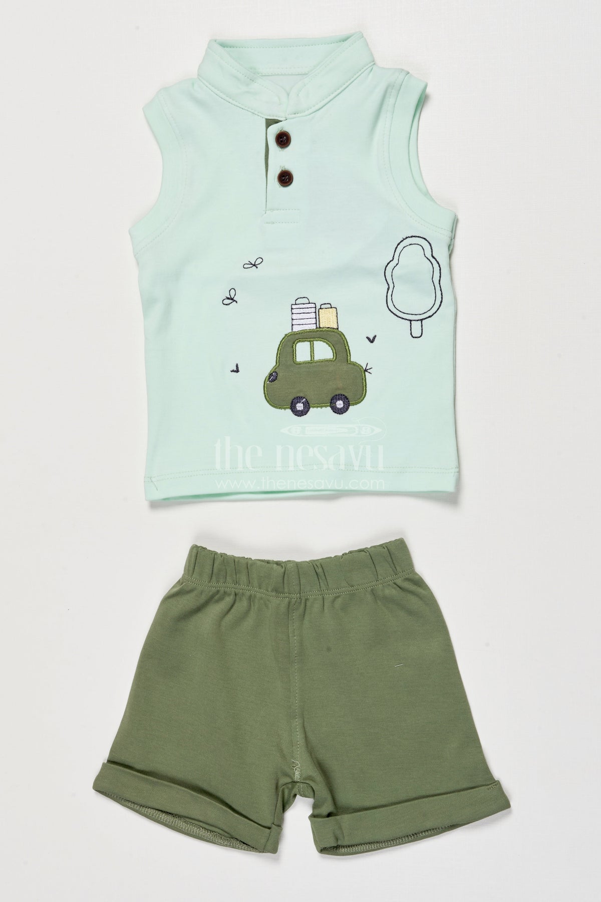 - Design: Embroidered cotton shirt, Matching shorts