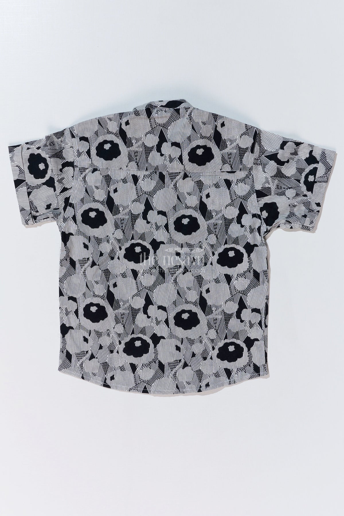 This black half sleeve cotton shirt is the perfect blend of modern style and comfort. Crafted from premium cotton block print fabric, it features an elegant black-and-white floral design with geometric detailing for a sophisticated yet trendy look. The lightweight fabric ensures breathability, making it ideal for both casual and festive occasions. The classic button-down style and structured collar add to its charm, allowing it to be paired effortlessly with jeans or trousers for a polished look.
