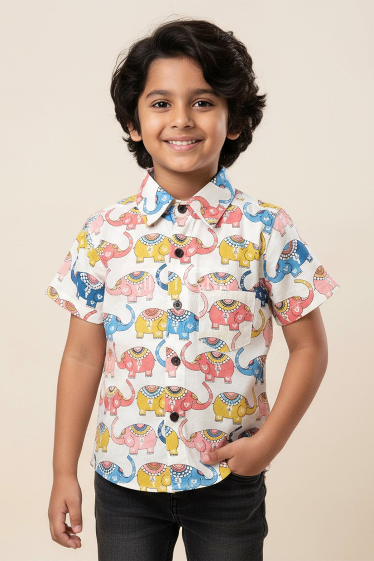 Boys Cotton Elephant Print Shirt for Everyday Wear and Festive Fun
