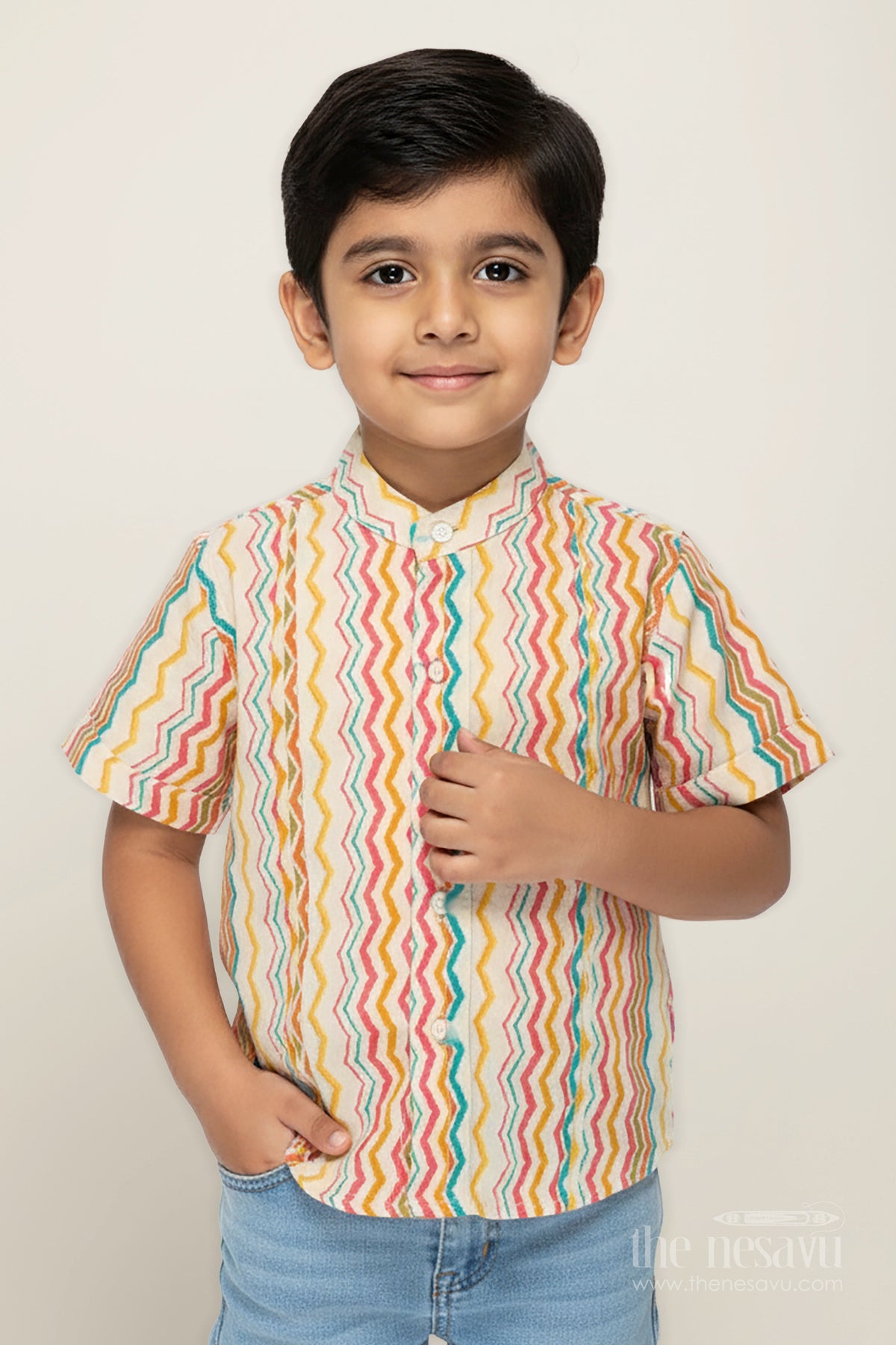 Colorful Striped Shirt for Ethnic Day At School with Vibrant Zigzag Print in Bright Festive Tones