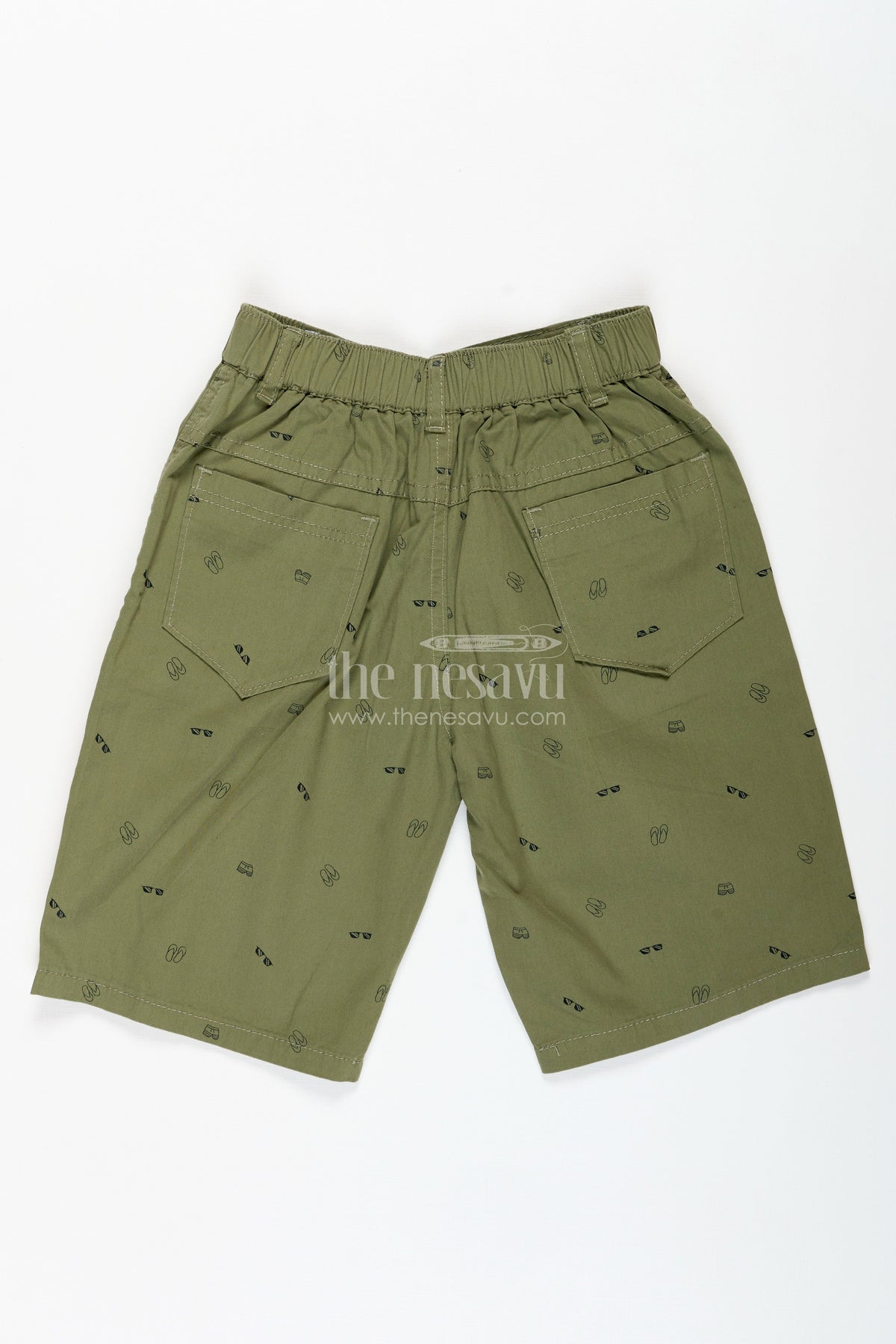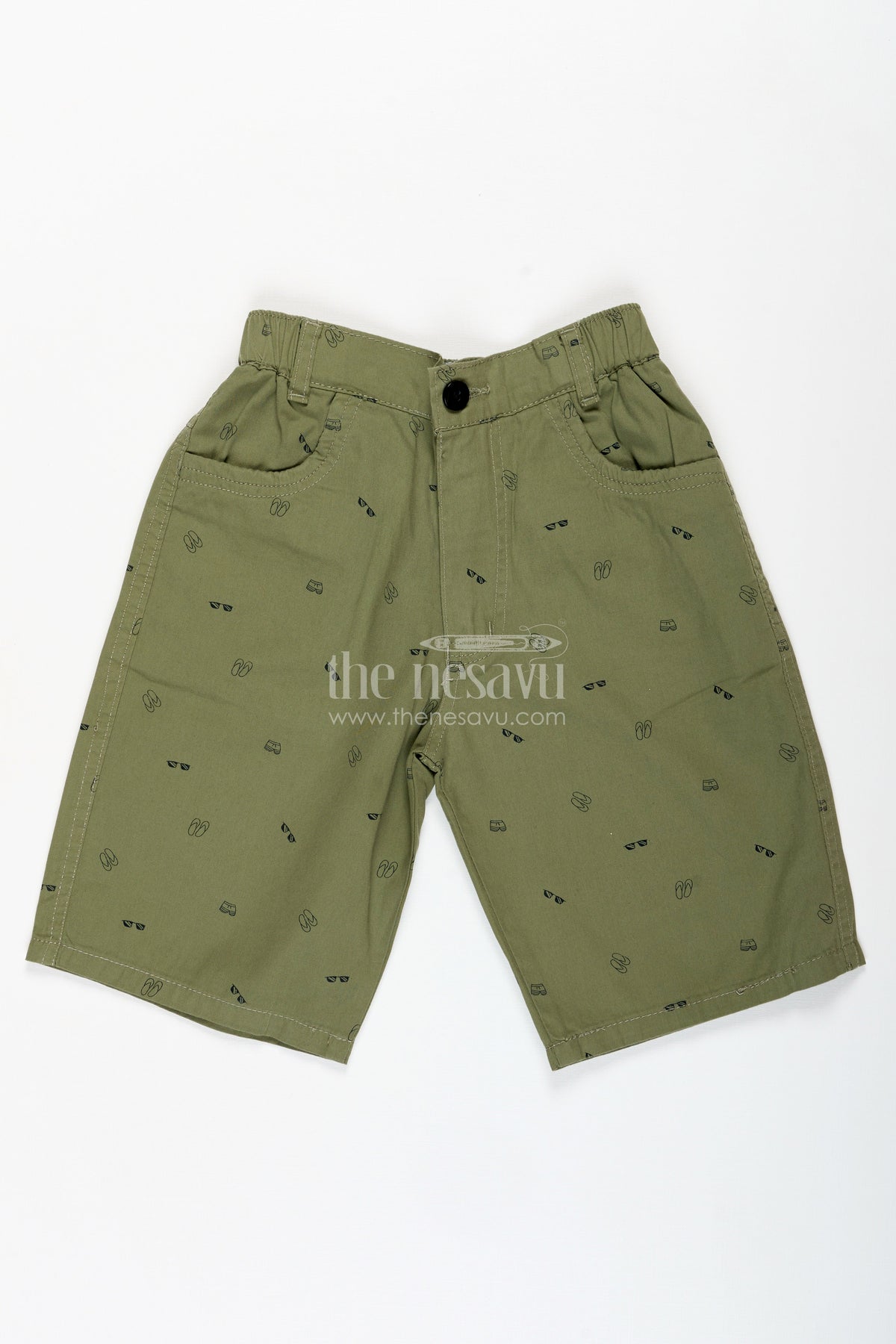 Boys Cotton Printed Shorts in Playful Green with Lightweight Fabric and Digital All Over Patterns