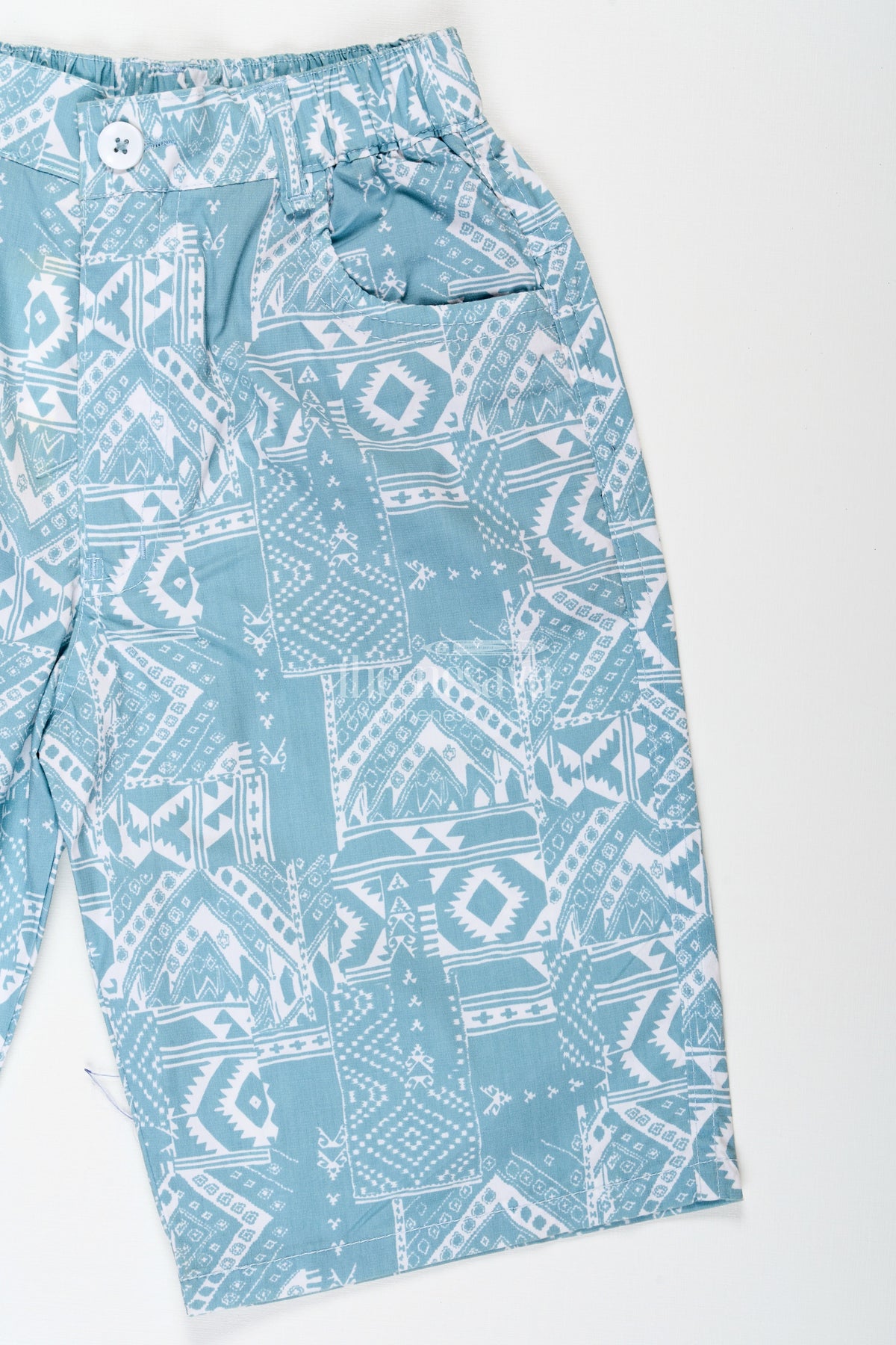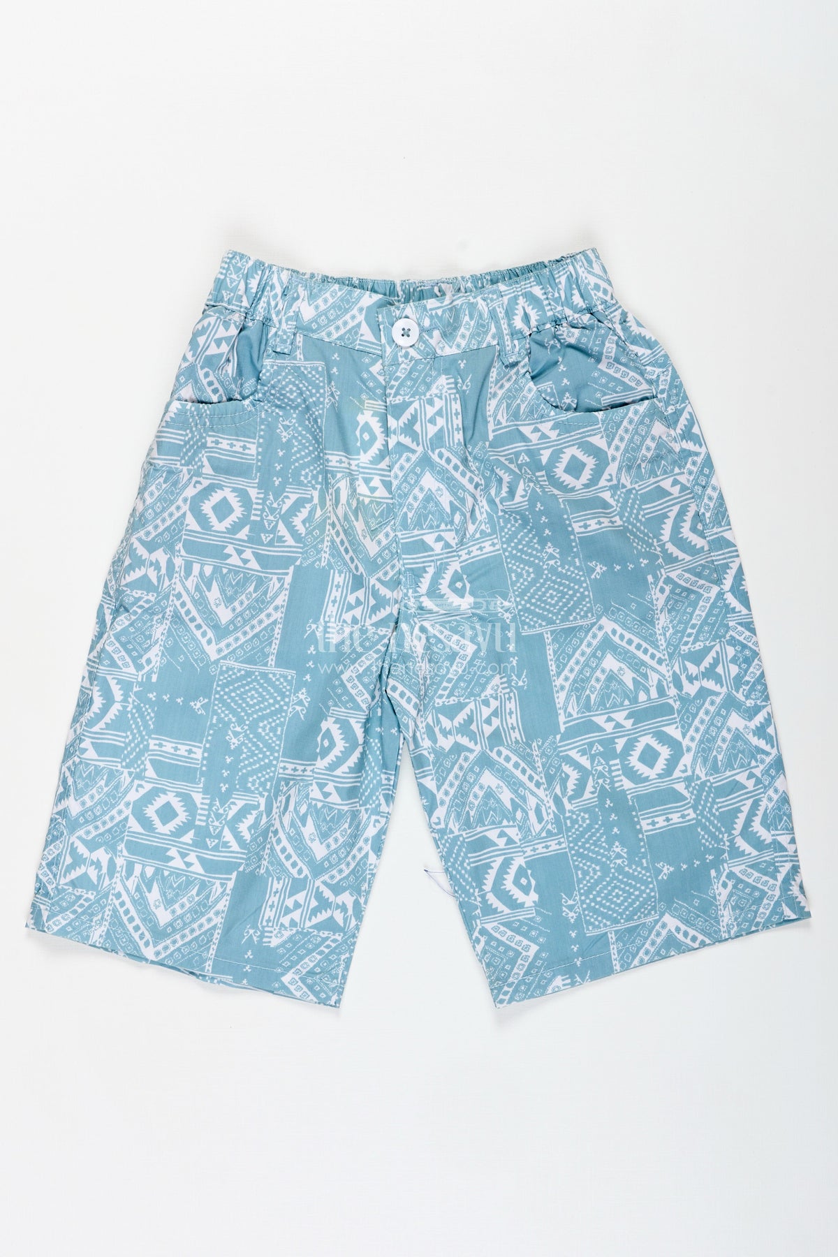 Boys Digital Printed Shorts in Blue with Soft Cotton Blend and Unique All Over Print Design