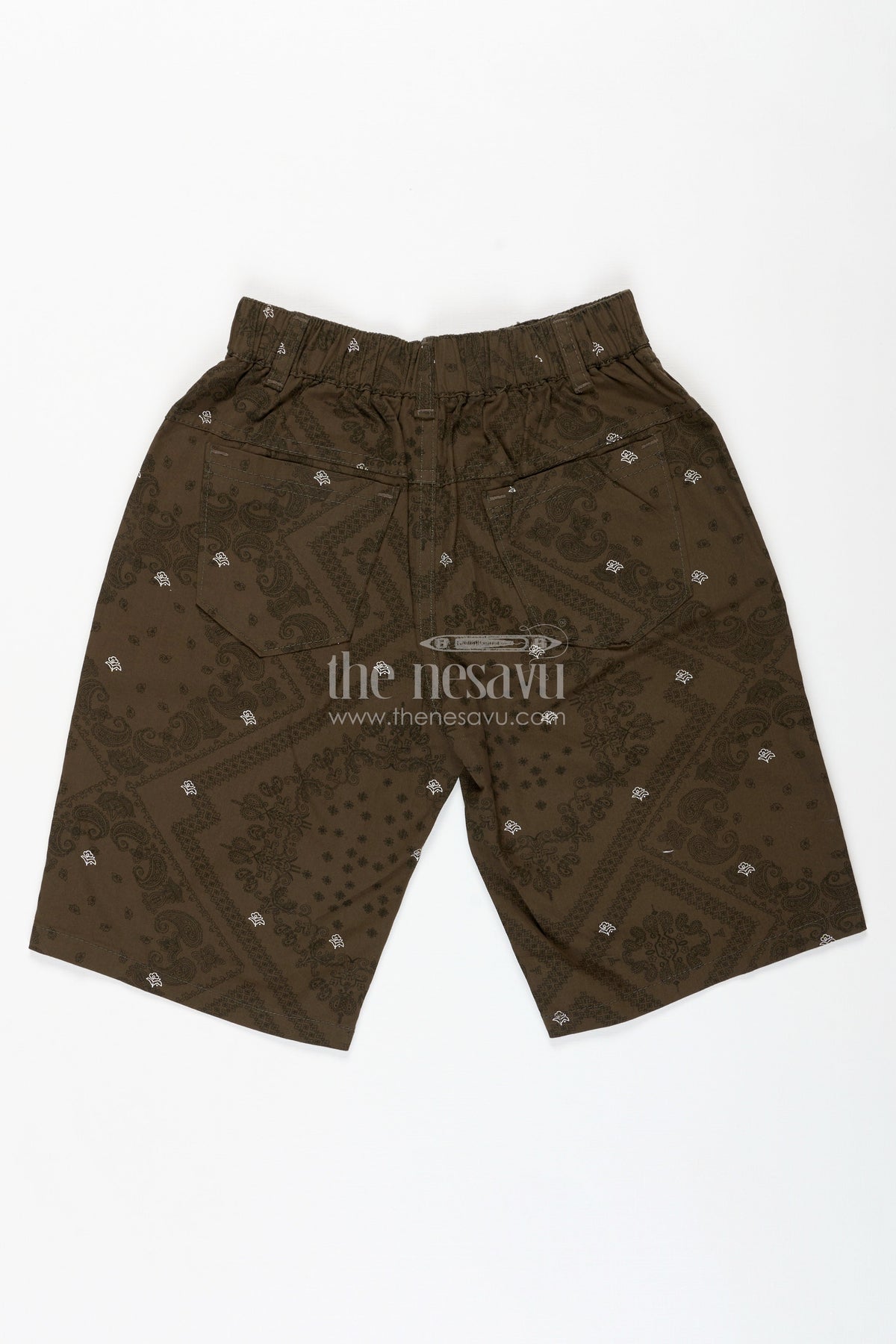 Boys Digital Printed Shorts in Olive Green with Cotton Blend Comfort and Easy Everyday Style