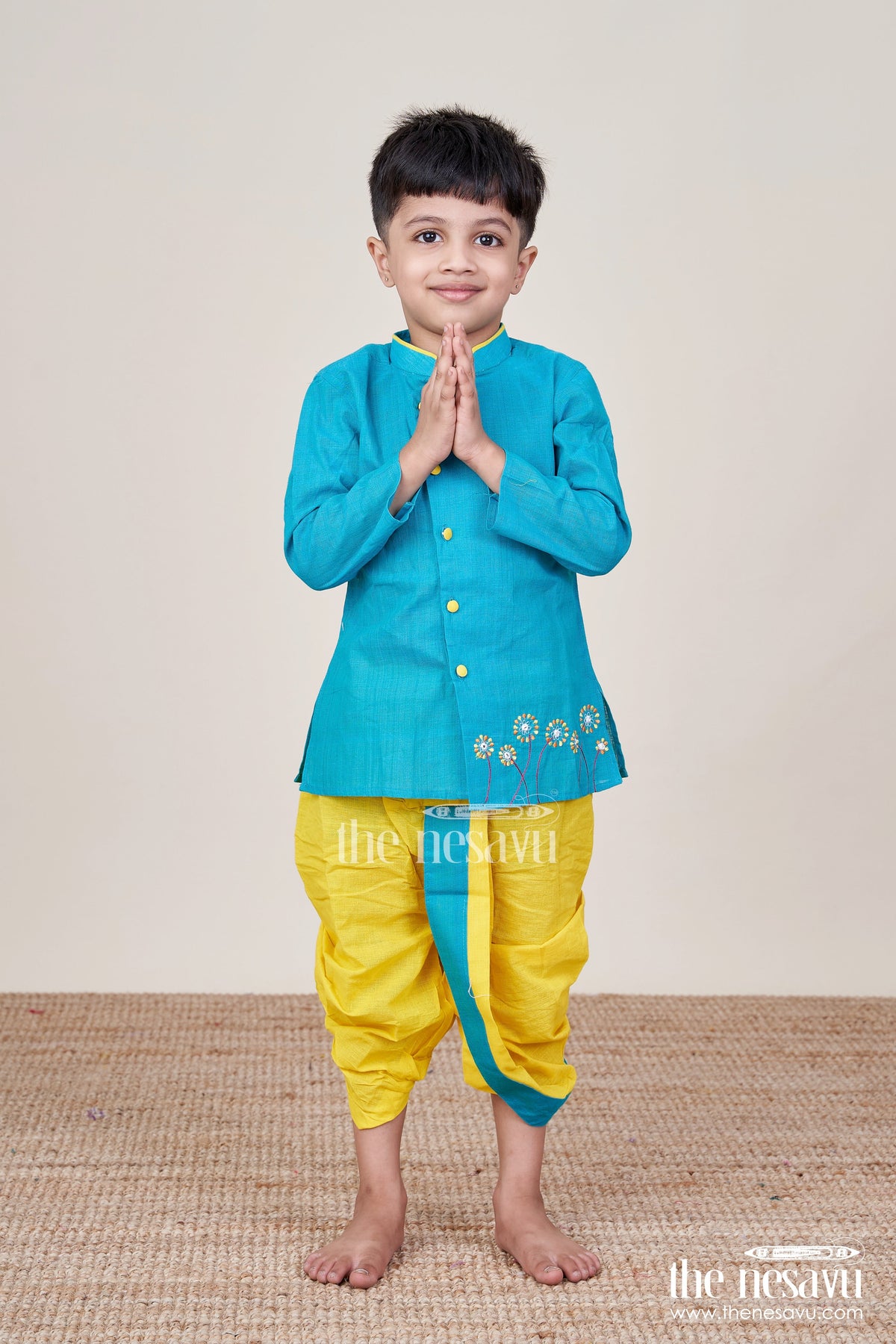 - This boys dhoti kurta set with embroidery is ideal for cultural celebrations and school events