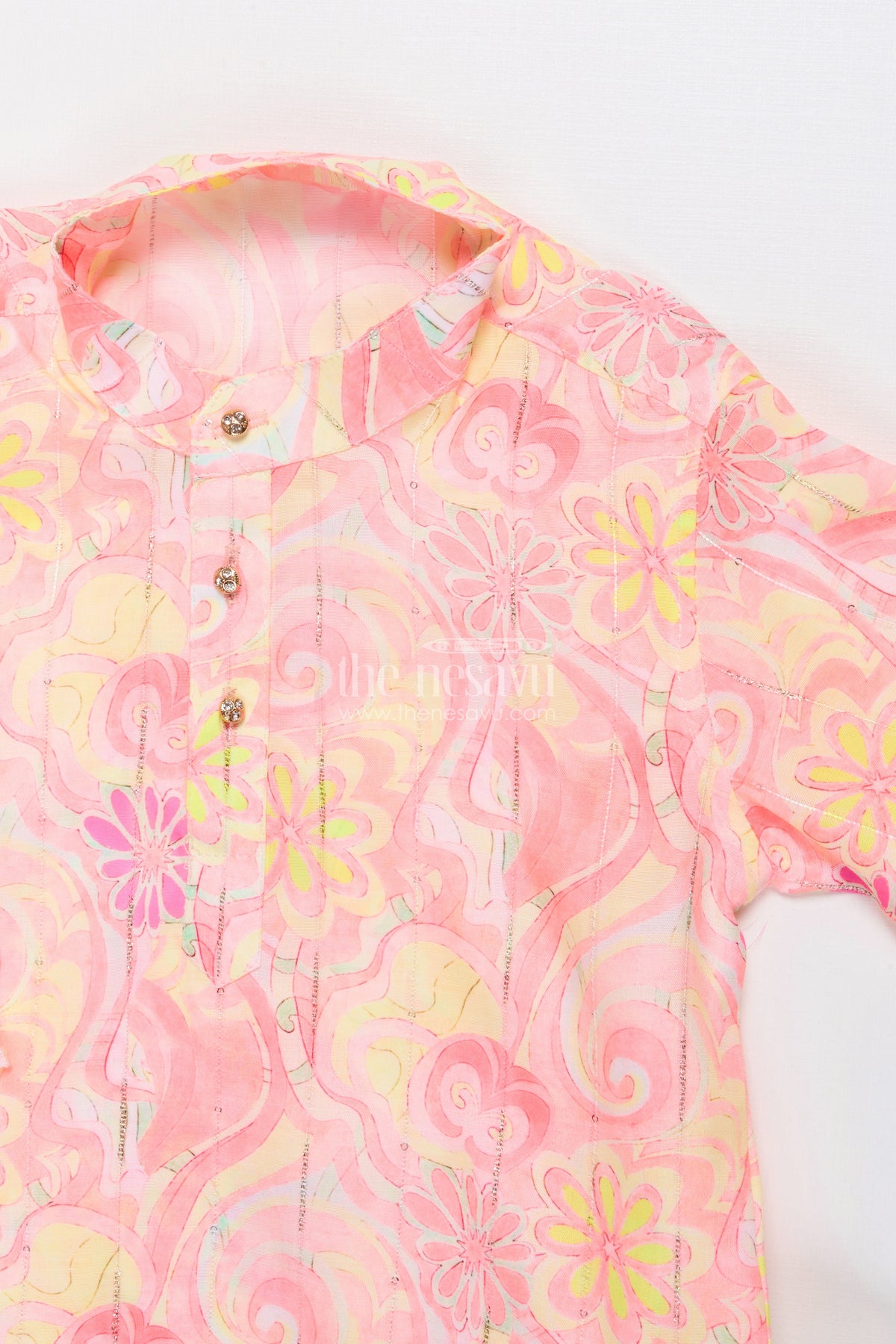 • This festive boys dhoti set features all-over floral embroidery for a bright, eye-catching look