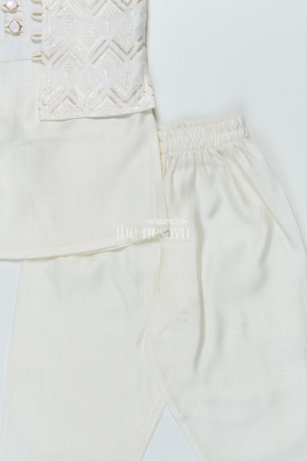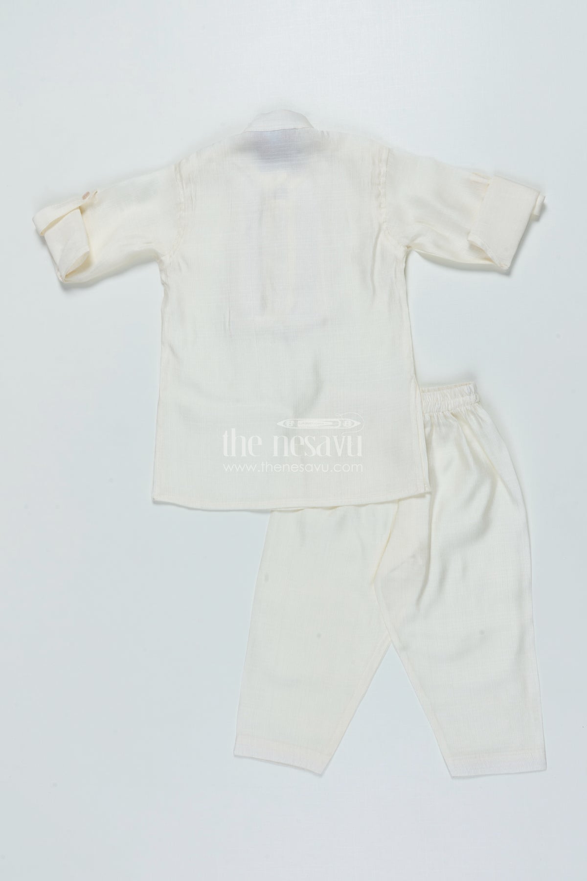 • A graceful ethnic ensemble for toddler boys featuring a cotton kurta and pyjama