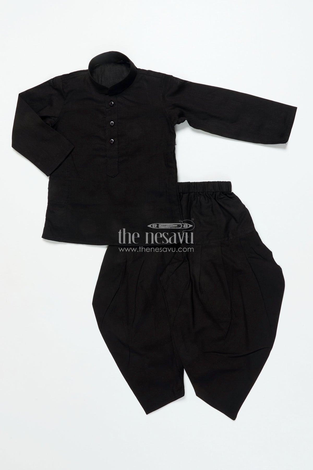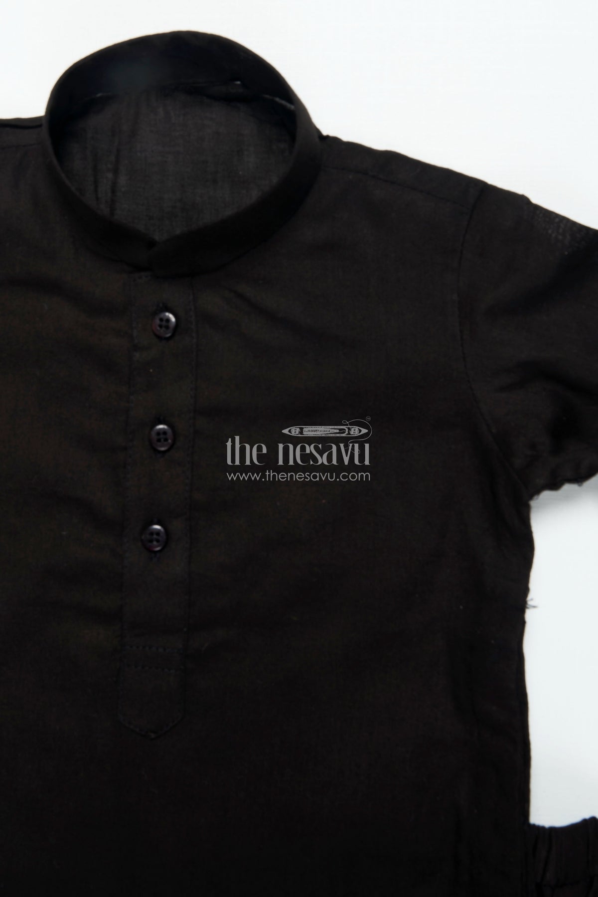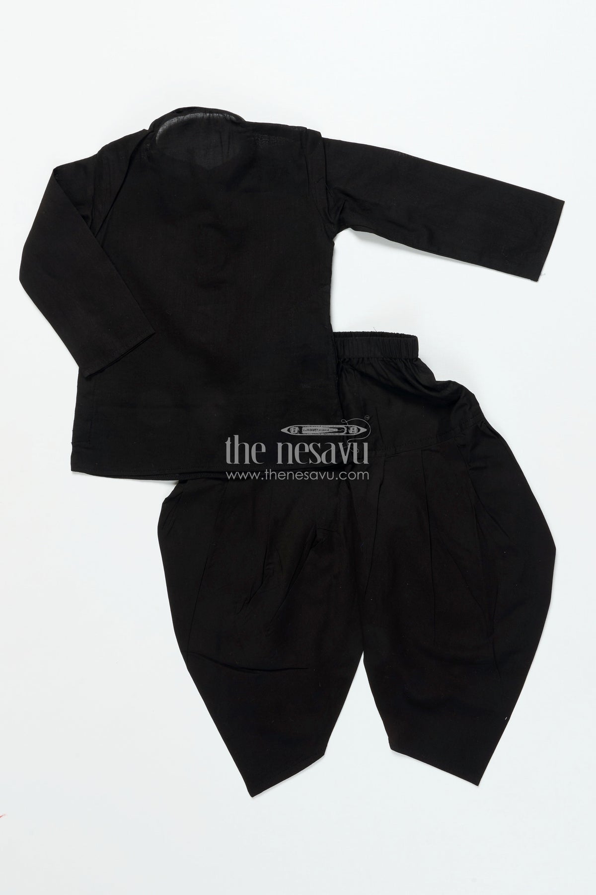 The Nesavu Boys Jacket Sets Boys Festive Jacket Set with Digital Print for Weddings and Birthdays Nesavu 12 (3M) / Black BES717A-12 Nesavu boys silk blend festive jacket set digital print birthday ethnic celebrations