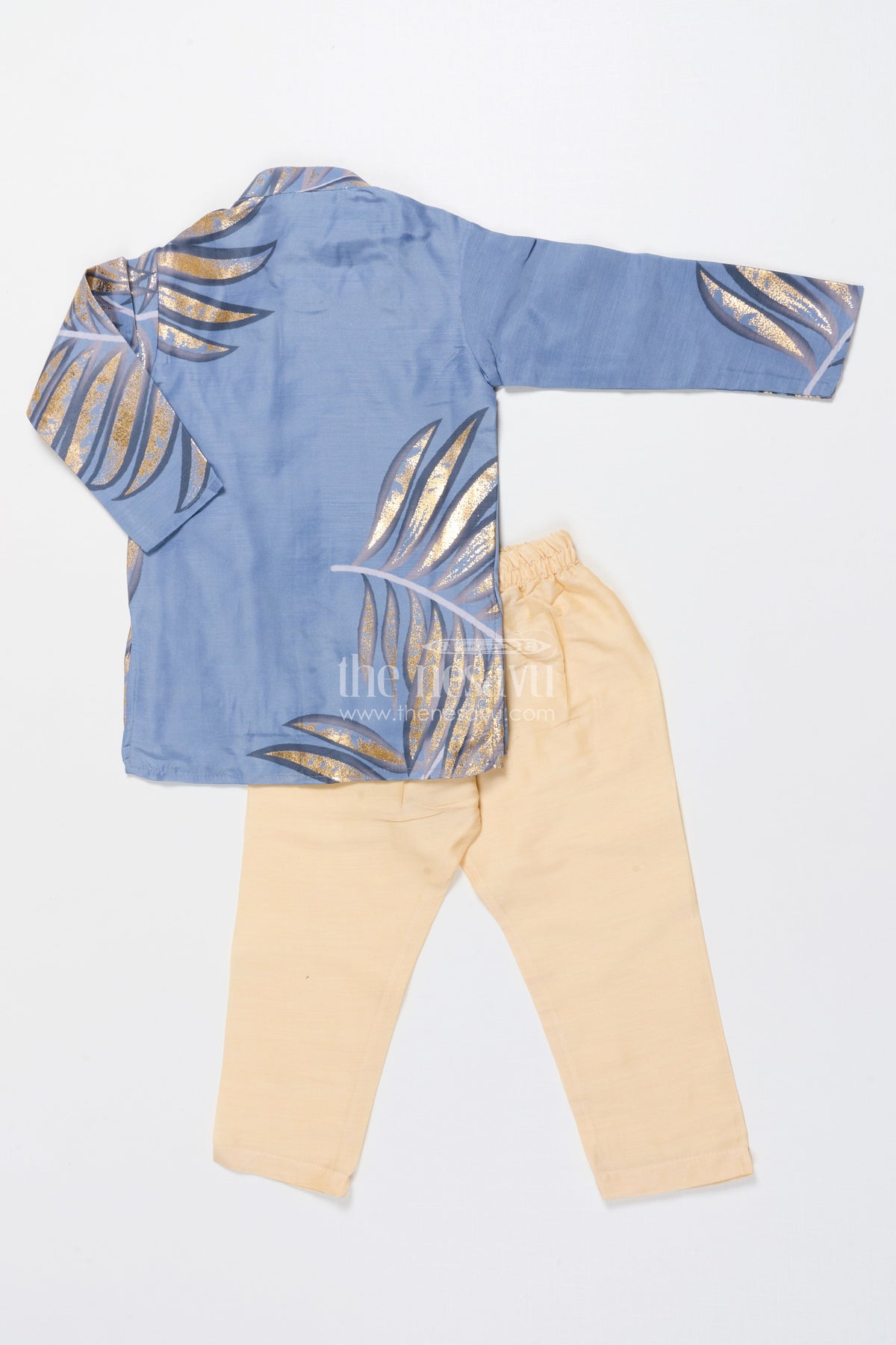 Boys Foil Print Kurta Set for Ethnic School Day and Casual Festivities