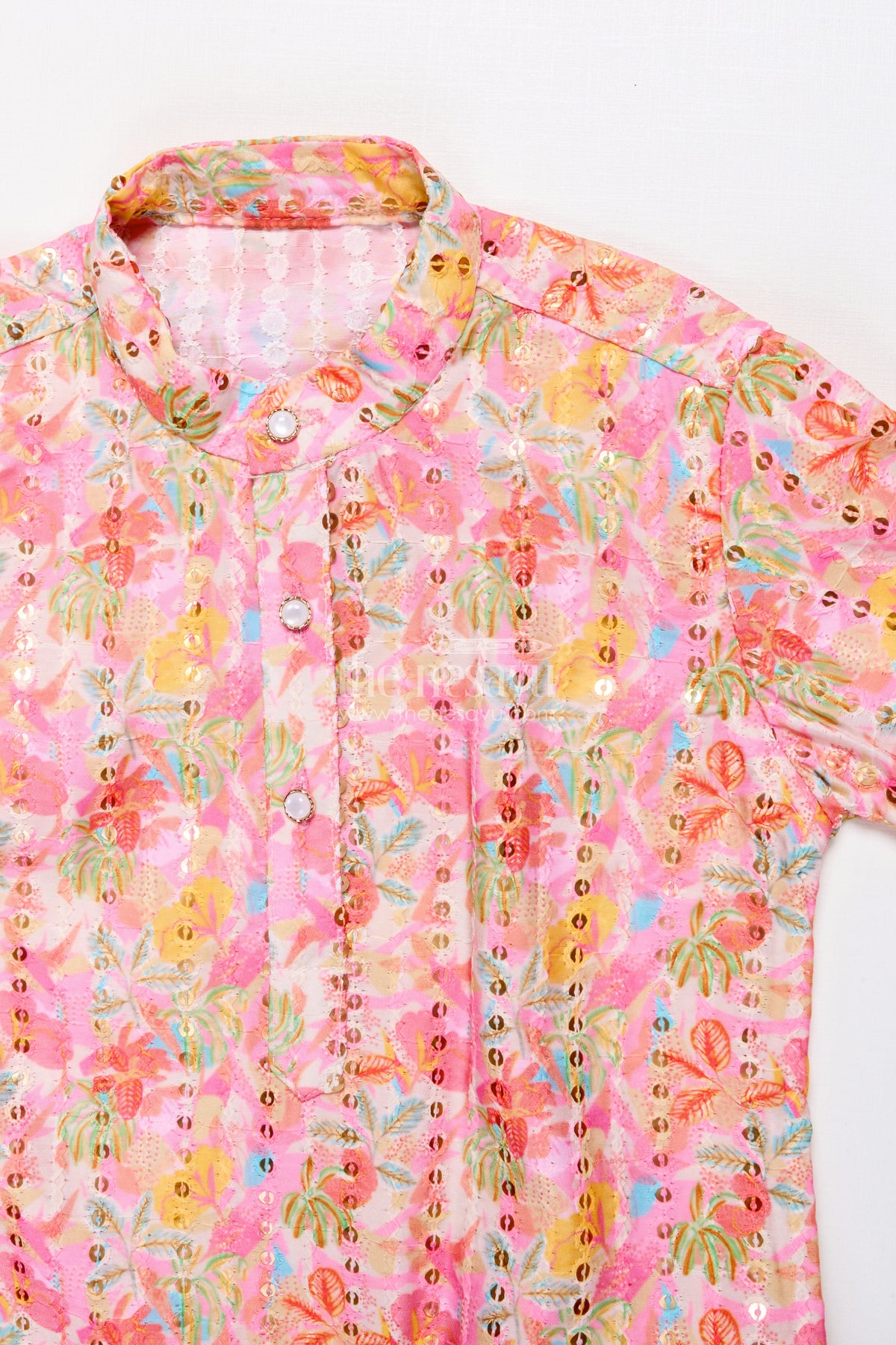 - This boys kurta set combines classic embroidery with modern digital prints