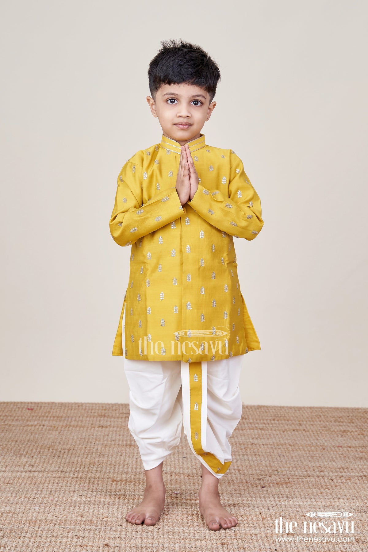 - This boys silk dhoti kurta set for weddings is crafted for traditional elegance and comfort